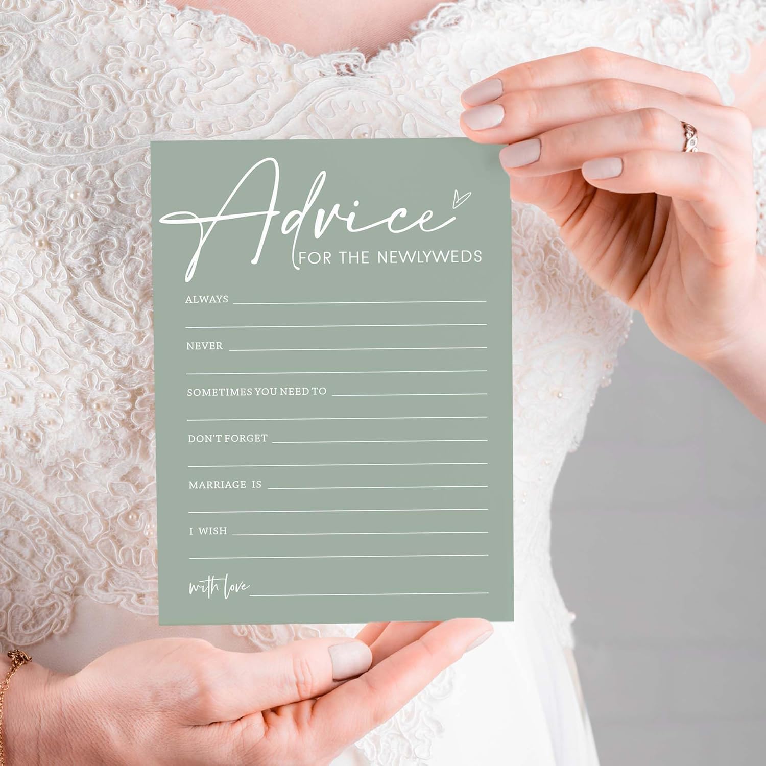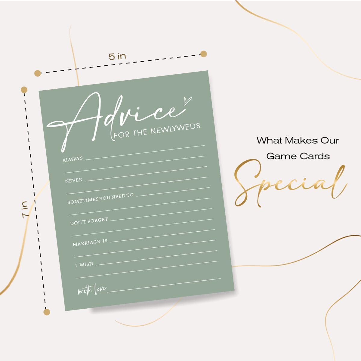 Bridal Shower Games Cards, Advice for The Newlyweds, Bridal Shower Games 25 Guests, Engagement Party Wedding Games for Guests, Minimalist Green Wedding Party Supplies - C01, Blue