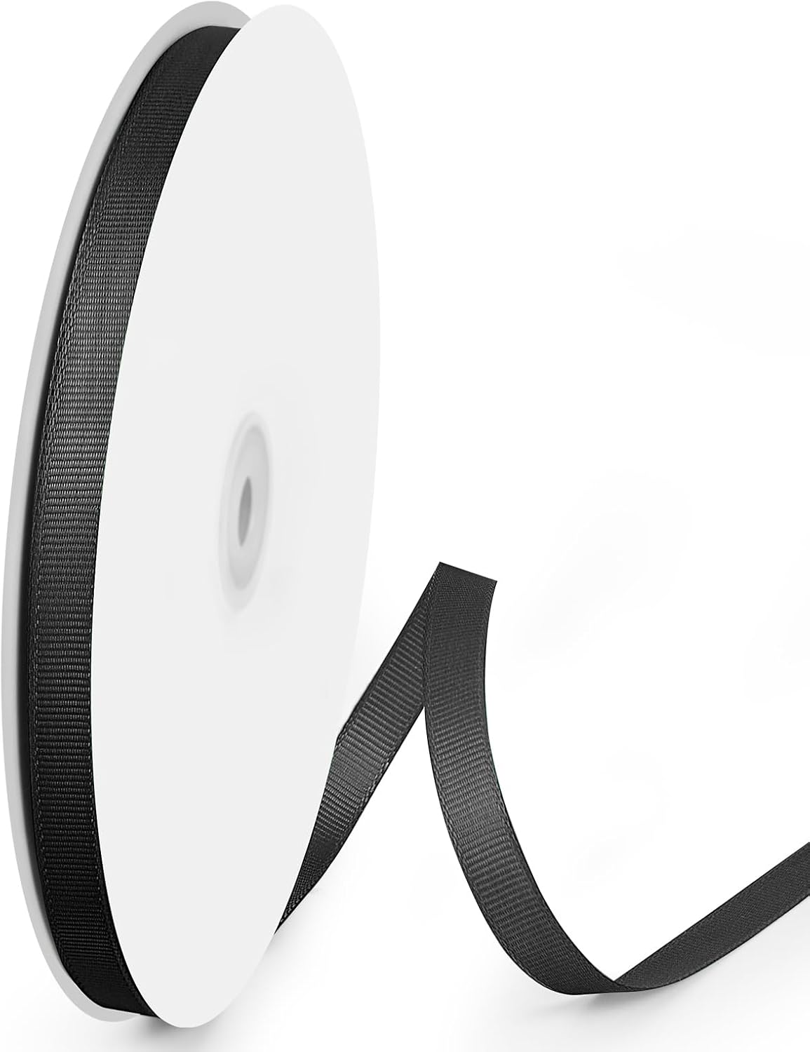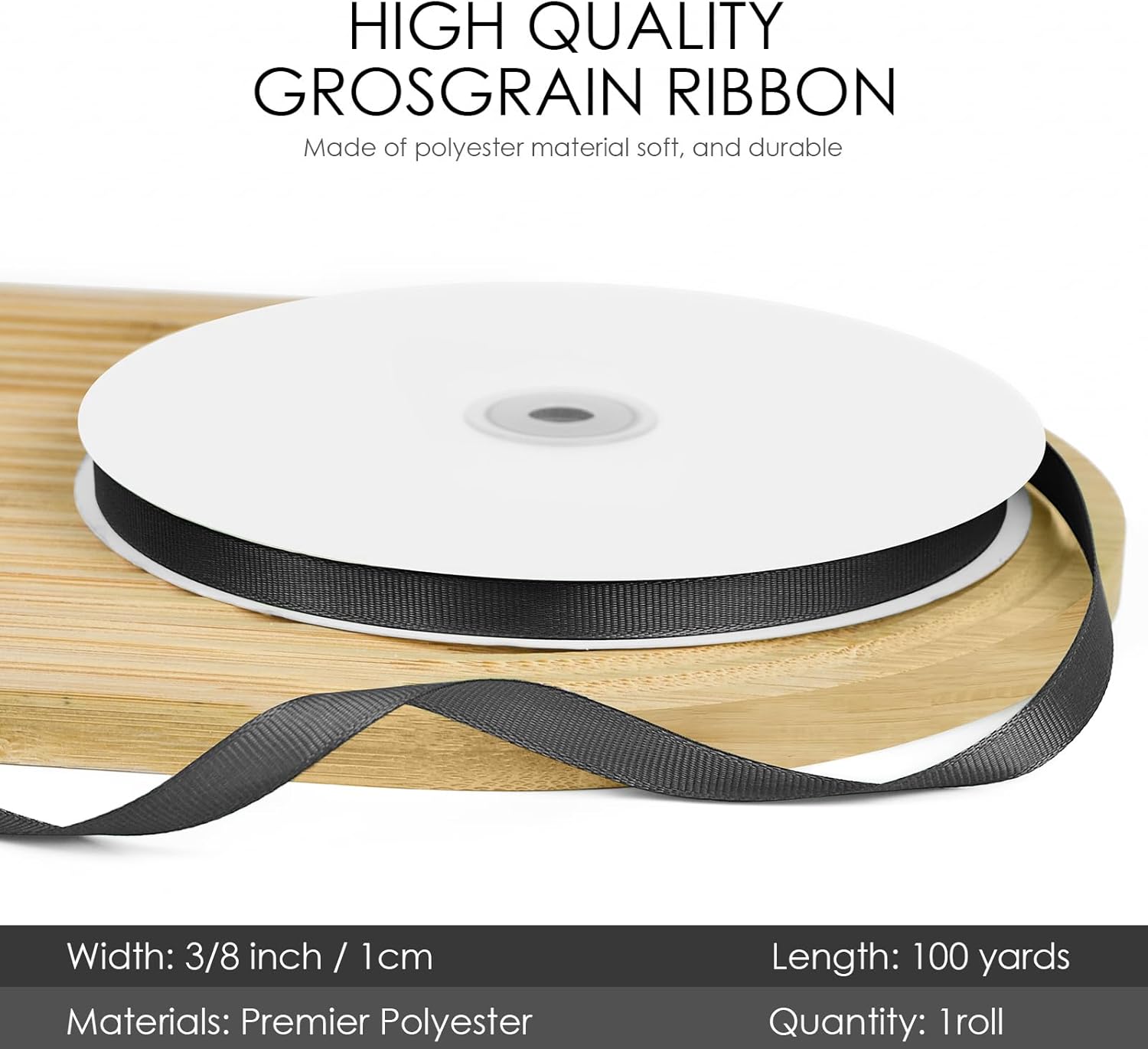 100 Yards 3/8 inch Grosgrain Ribbon, Solid Color Fabric Ribbon Perfect for Gift Wrapping, Wedding, Handmade Bows, Floral Bouquets and Party Decoration(Black)