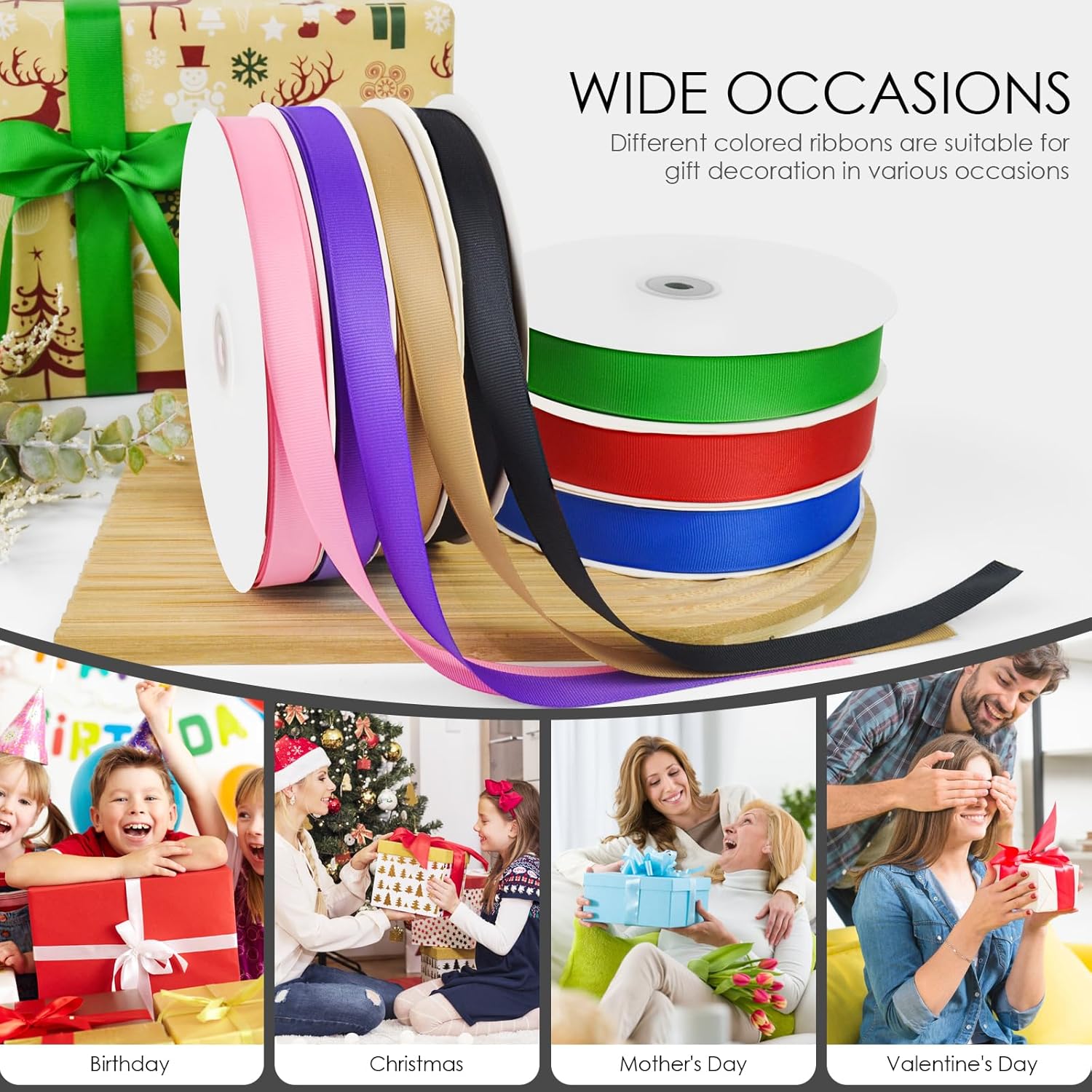 - DIFFERENT OCCASIONS: These wrapping ribbons and decorative ribbons are suitable for many occasions like birthday party decoration, Mother's Day, Father's Day, Valentine's Day, Easter, Halloween, Christmas, Thanksgiving, New Year's Gift, baby shower, etc.