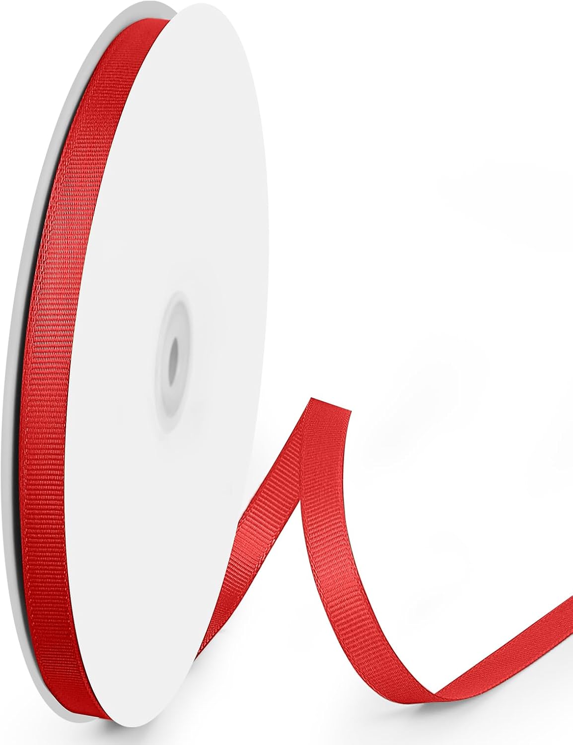 100 Yards 3/8 inch Grosgrain Ribbon, Solid Color Fabric Ribbon Perfect for Gift Wrapping, Wedding, Handmade Bows, Floral Bouquets and Party Decoration(red)