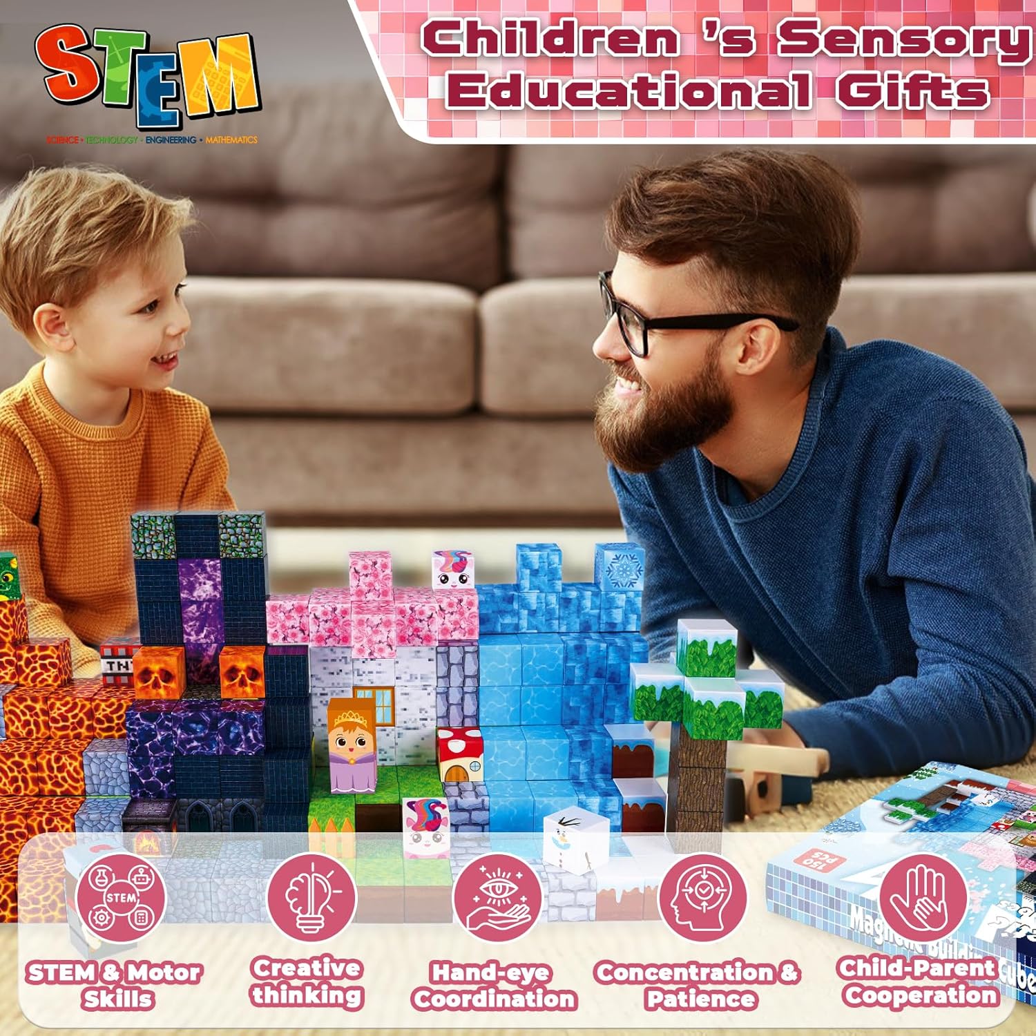 - 【STEM Learning Toys】 Boost your child’s hand-eye coordination, logical thinking, and creativity with these educational magnetic blocks. These magnetic cube blocks are ideal for kids toys, fostering STEM learning through engaging play.