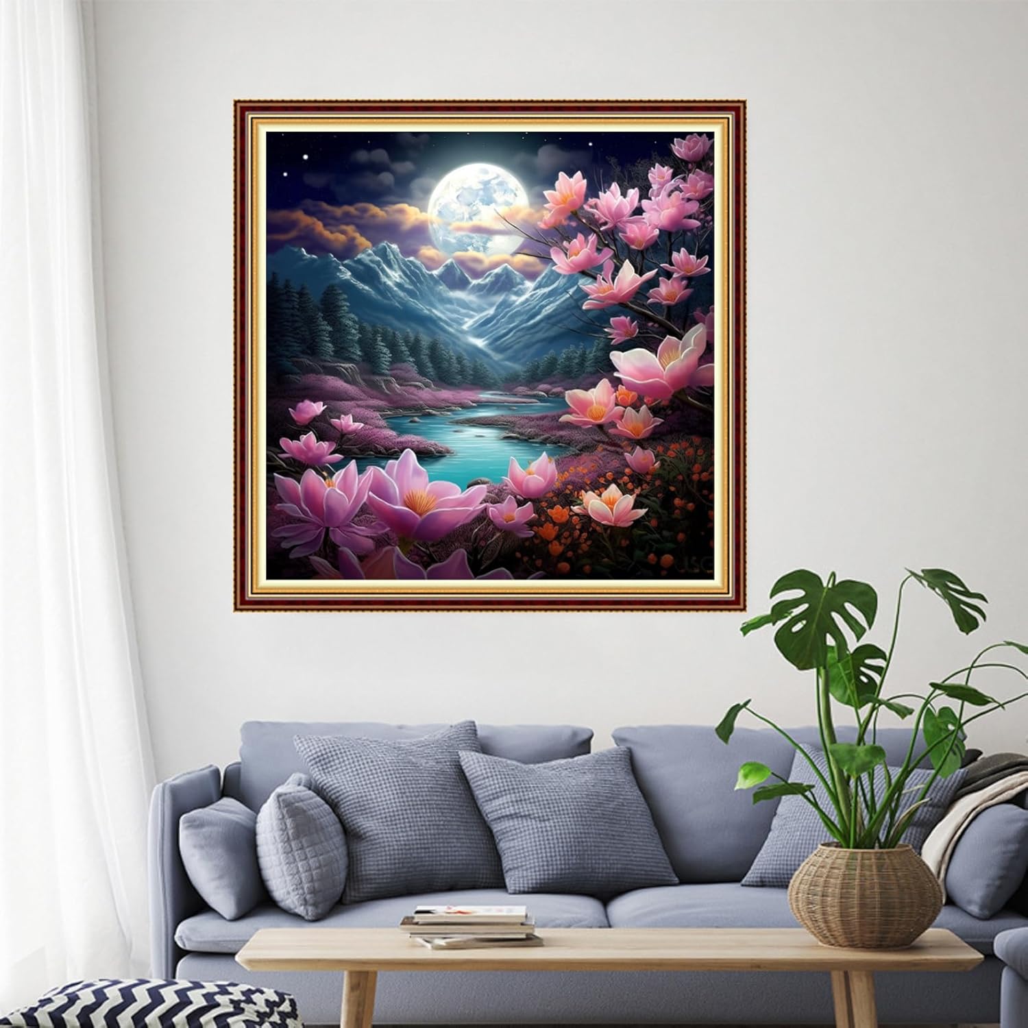 Funchey Stamped Cross Stitch Kits, DIY Cross Stitch Pattern for Adults Beginners Needlepoint Kits Embroidery Kit Arts and Crafts 11CT-Moonlight Scenery 18x18 inch
