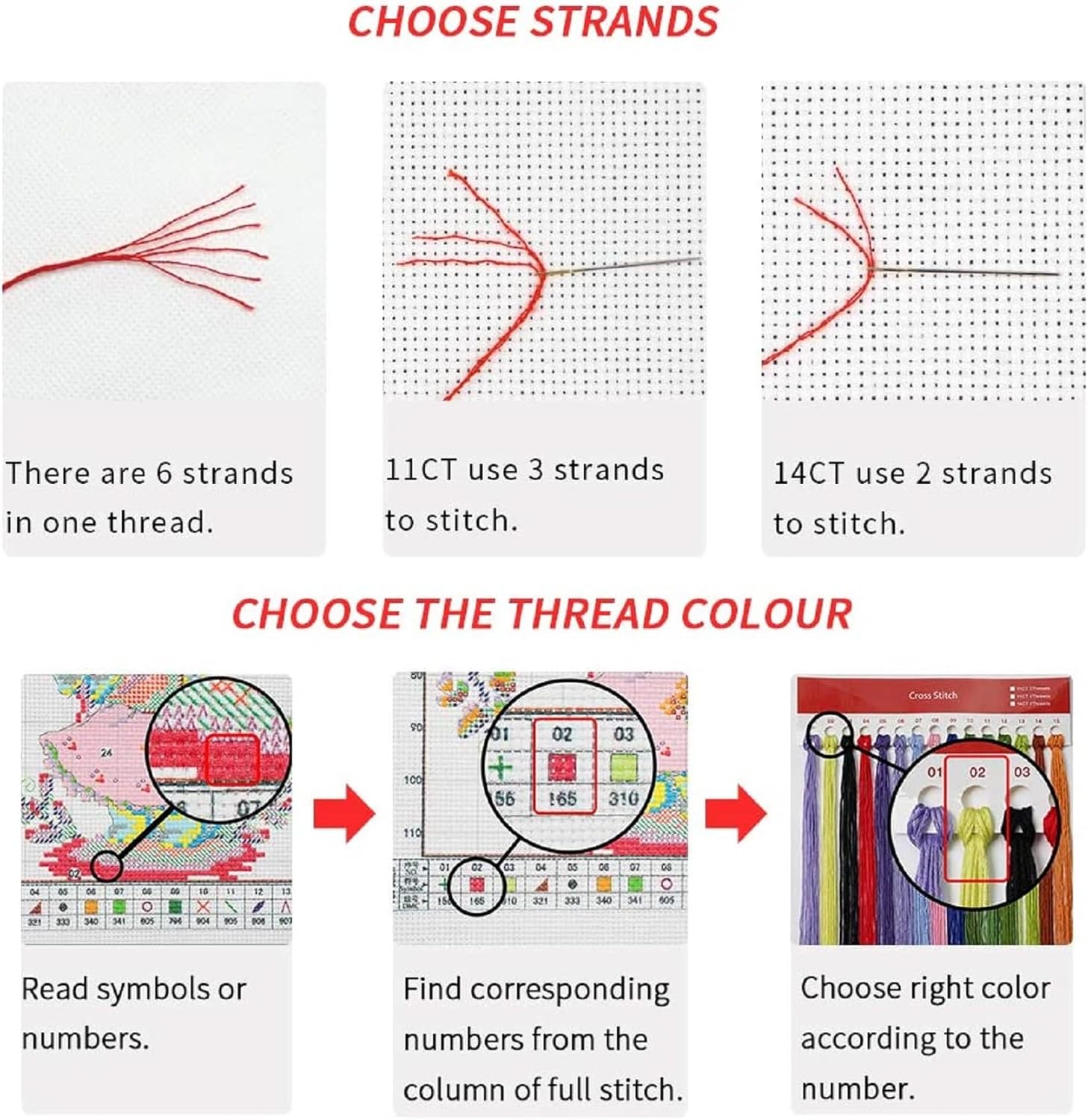 - 【Pre printed pattern fabric】 Our cross stitch pattern is clearly printed with small squares, which are colored and marked with symbols. Each symbol corresponds to the color of a cross stitch thread. The symbol is written on the chart, and the corresponding thread color is written below the chart.