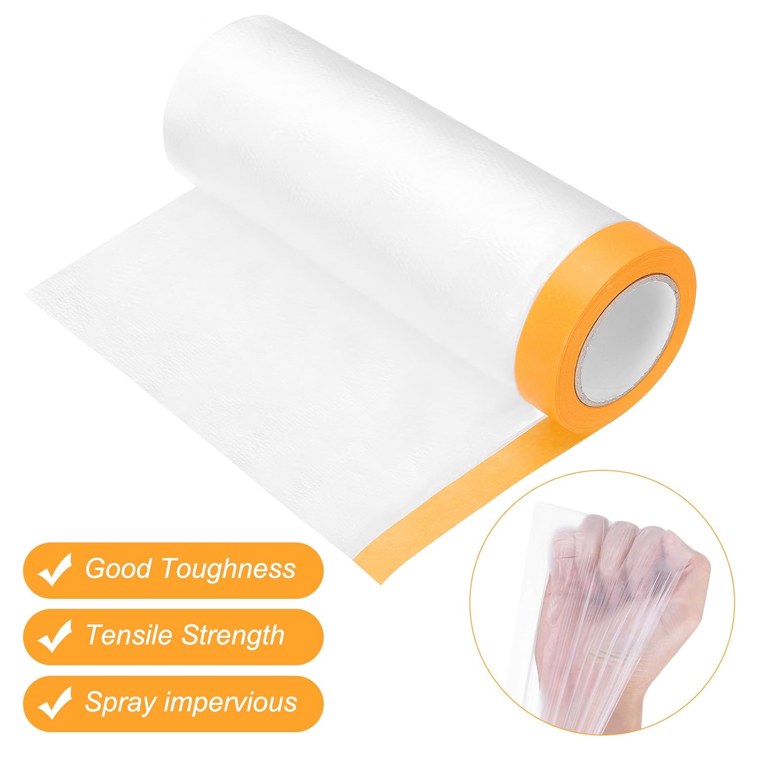 - Tear Resistant Plastic Sheeting Roll: the roll design of Pre-Taped Masking Film Tape for quick and convenient unfolding and covering of various small appliances. You can cut plastic film to different lengths to suit different items.