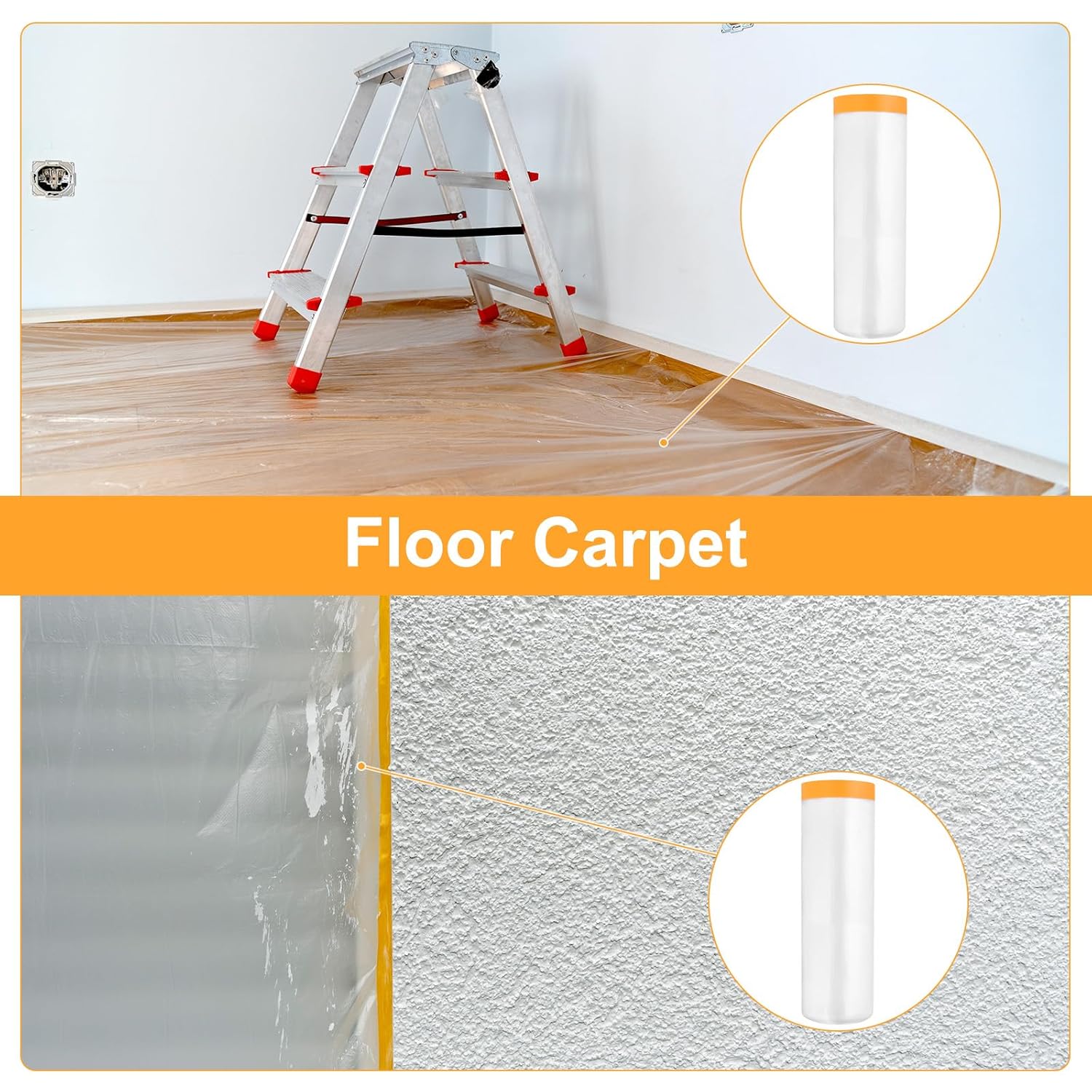 - Material: The Painters Plastic with Tape is made from non-scratching PE (polyethylene) material with a dustproof effect that optimizes your projects by quickly and effectively masking areas that need protection. The easy-to-use design allows for efficient application and removal without leaving a residue.