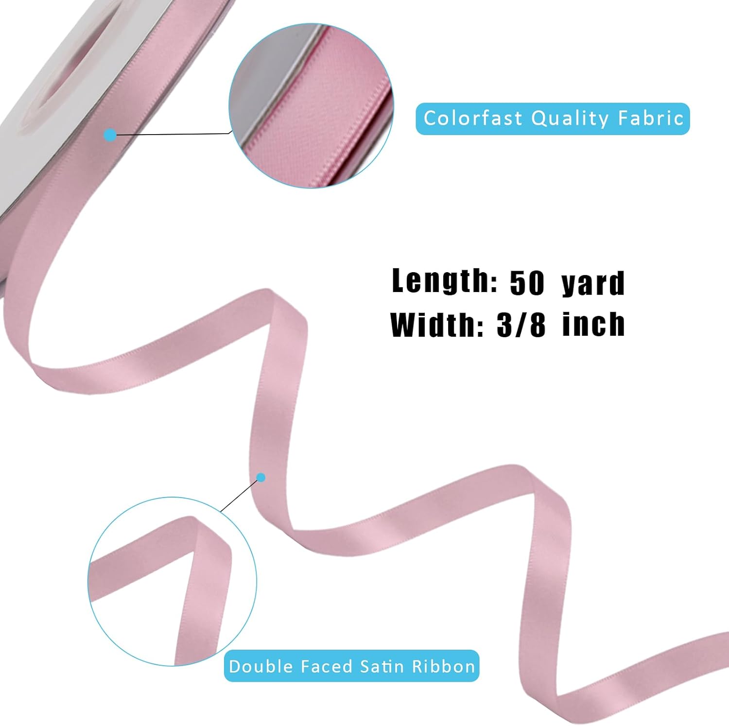 LaRibbons 3/8 Inch 50 Yard Double Faced Satin Ribbon,Rose Pink Small Satin Craft Fabric Ribbon for Gift Wrapping Floral Bouquets Wedding Party Decoration