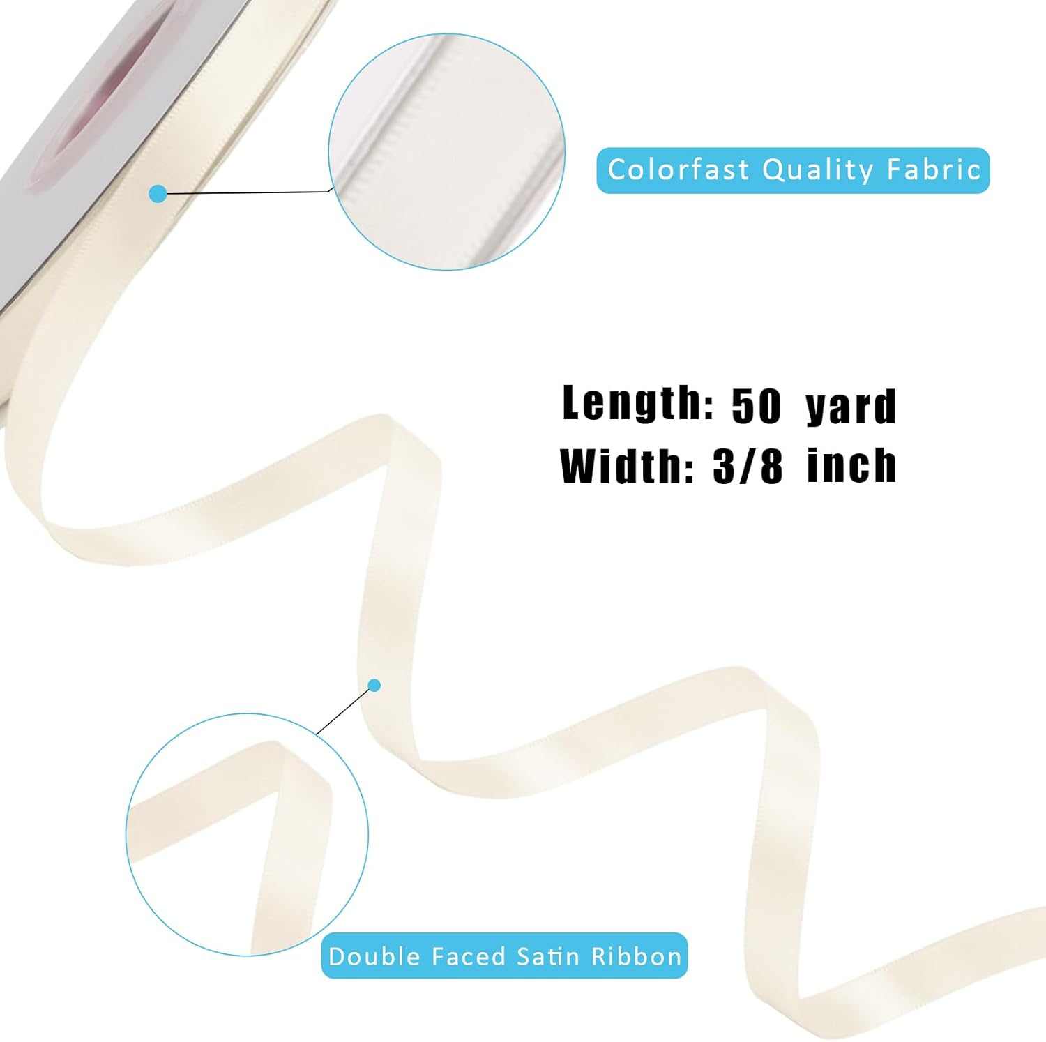 LaRibbons 3/8 Inch 50 Yard Double Faced Satin Ribbon,Ivory Small Satin Craft Fabric Ribbon for Gift Wrapping Floral Bouquets Wedding Party Decoration