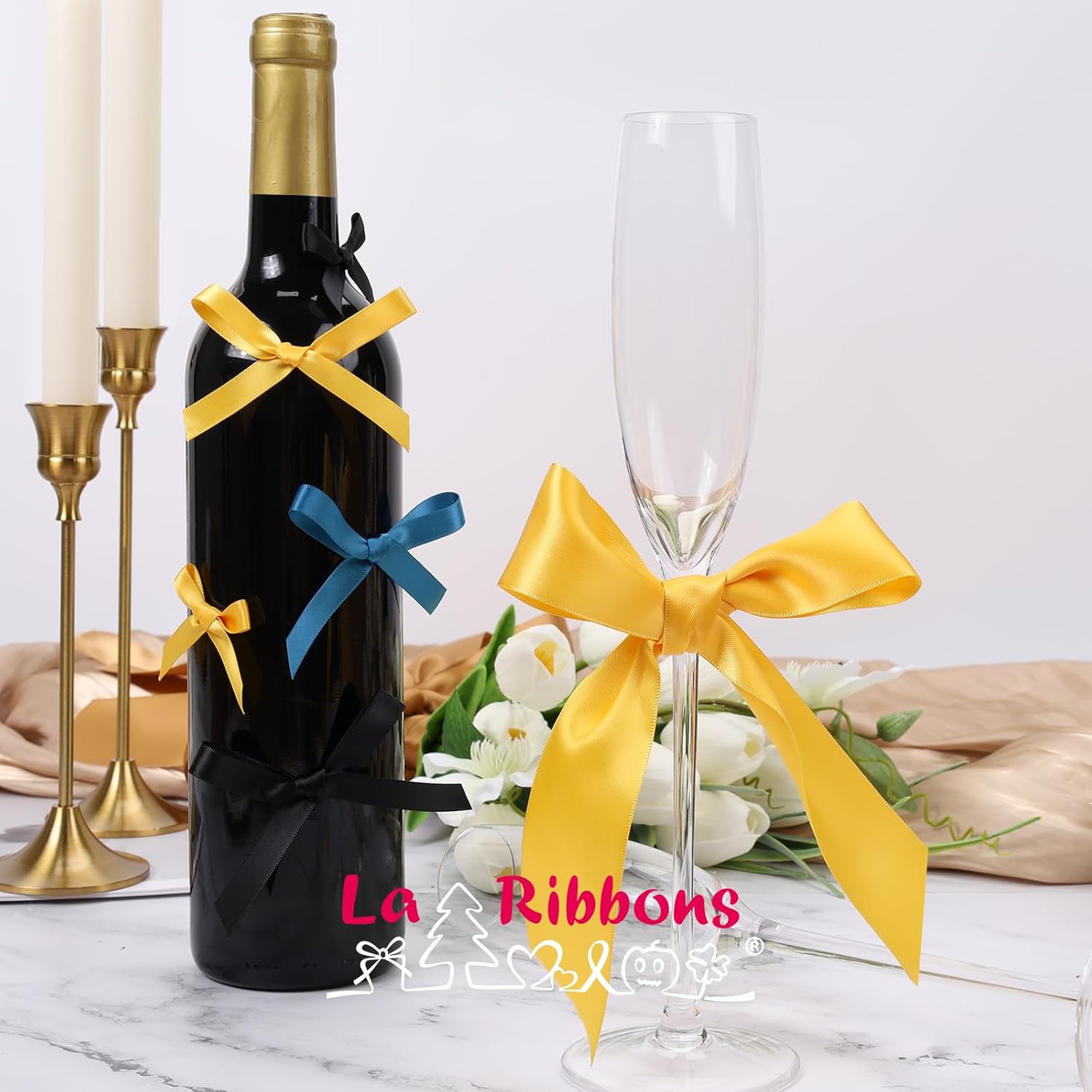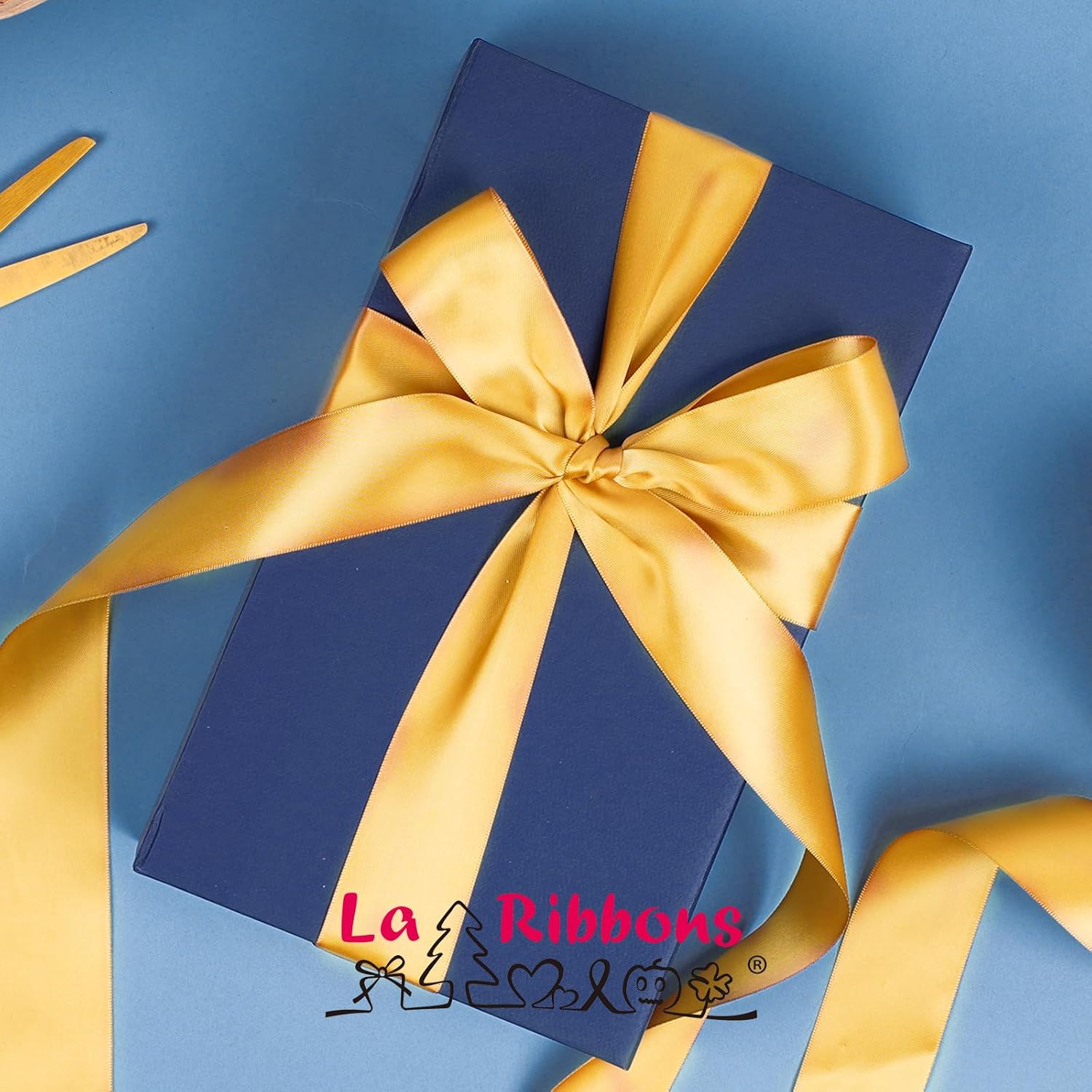 LaRibbons 1 1/2 Inch 50 Yard Double Faced Satin Ribbon,Yellow Gold Satin Craft Fabric Ribbon for Gift Wrapping Floral Bouquets Wedding Party Decoration