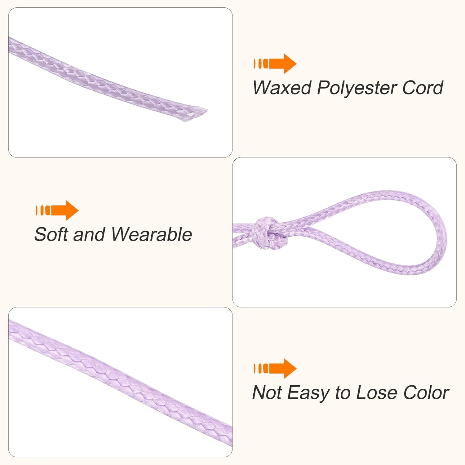 MECCANIXITY Waxed Cord 3mm Waxed Polyester Cord 44 Yard Wax String for Bracelet Making, Necklaces, Beading, Jewelry Making and DIY Crafts(Light Purple)
