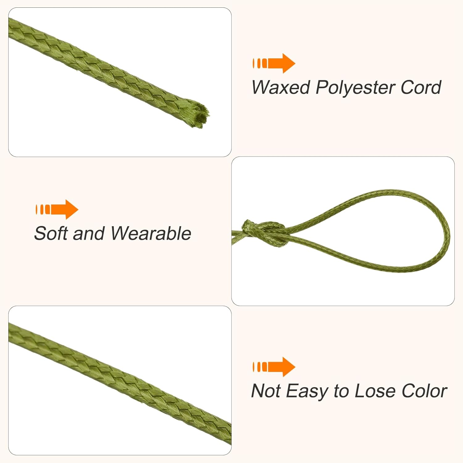 MECCANIXITY Waxed Cord 1.5mm Waxed Polyester Cord 175 Yard Wax String for Bracelet Making,Necklaces, Beading,Jewelry Making and DIY Crafts(Army Green)