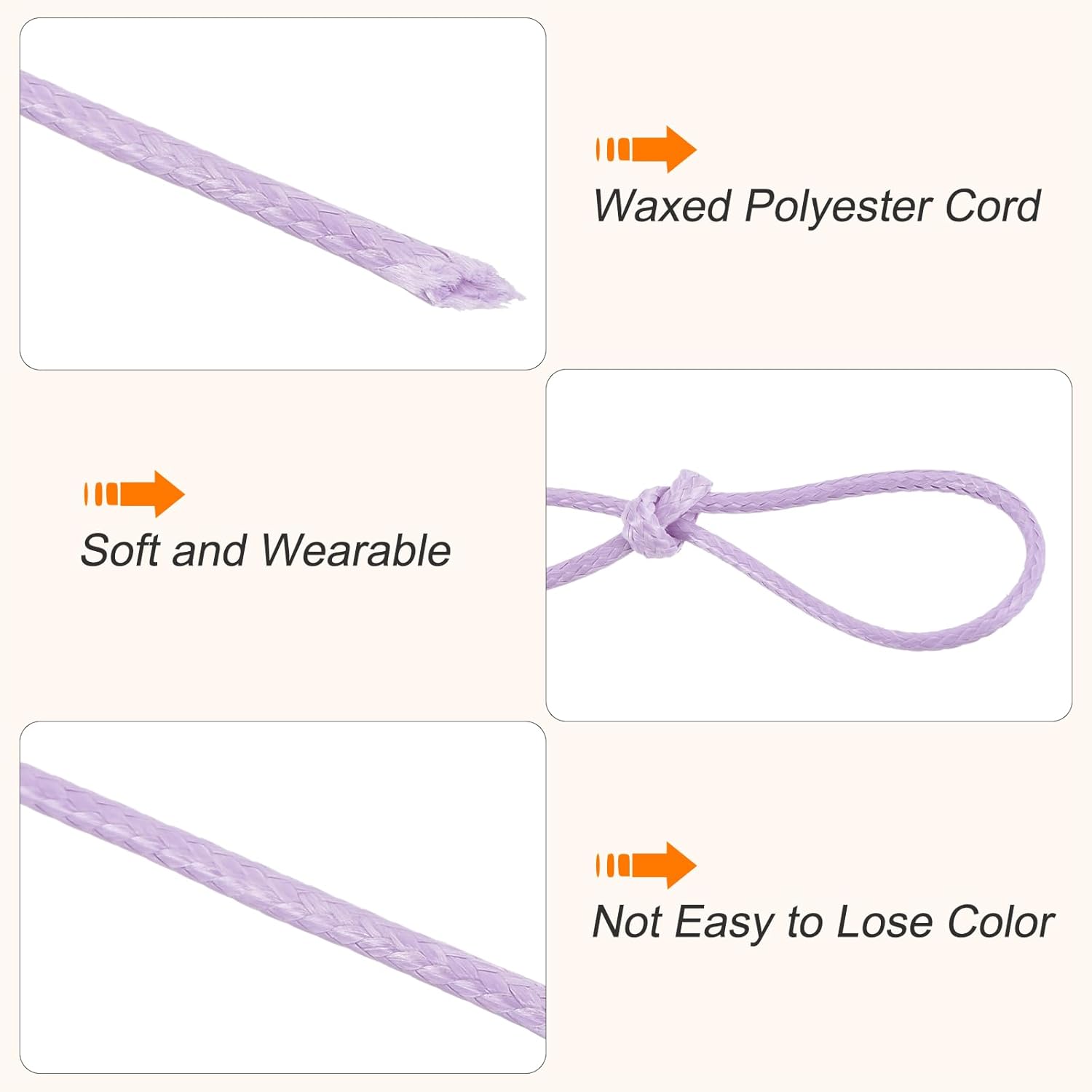 MECCANIXITY Waxed Cord 1mm Waxed Polyester Cord 175 Yard Wax String for Bracelet Making,Necklaces, Beading,Jewelry Making and DIY Crafts(Light Purple)