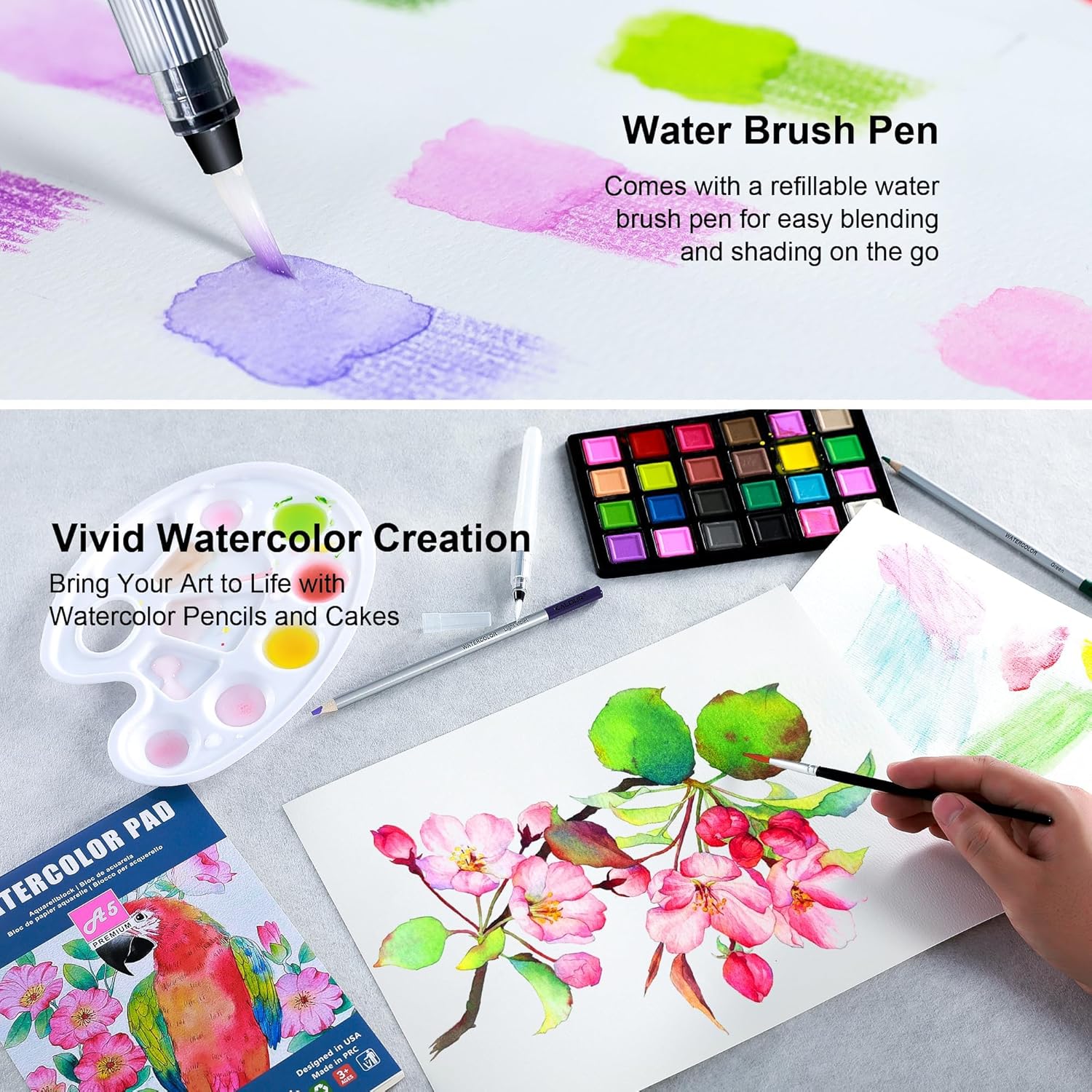 - Includes Multiple Sketch and Art Pads: The set features 5 different art surfaces, including a sketch book, a watercolor pad, a black paper pad, a tan sketch book, and a pastel pad. It also includes a drawing tutorial and a coloring book, providing diverse surfaces for your creative projects and helpful guidance to improve your skills.