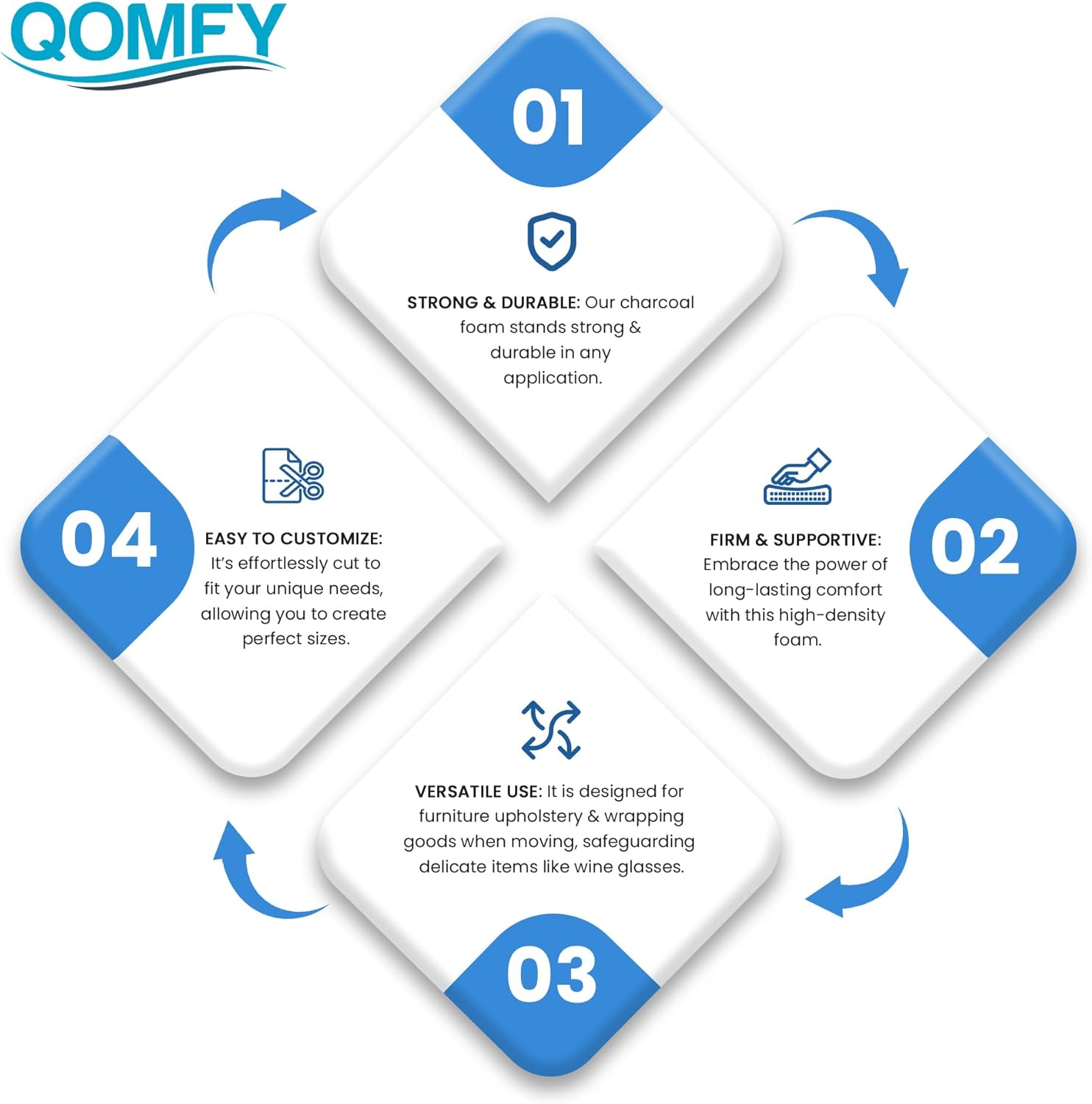 - Shock Absorbent Material - Protect your delicate items with QOMFY’s charcoal foam, featuring excellent shock absorption. Perfect for packaging, it provides reliable protection during shipping, storage, and handling, safeguarding your valuables from damage.