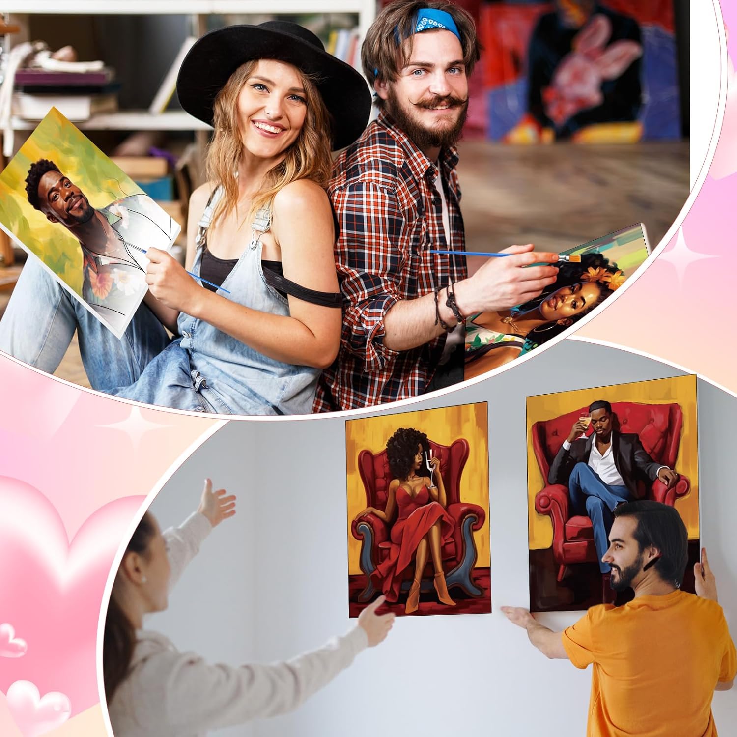 - Different Styles: our drawn canvas offer a variety of 12 different fashionable couple themed styles to choose from; This design can make sure there's a style that fits your taste and preference; Whether you're a beginner, a paint and sip going enthusiast, or an expert painter, our painting canvases with pictures to paint will help you craft stunning artworks effortlessly; Get ready to dive into the world of colors and creativity with our pre drawn canvas paint kit