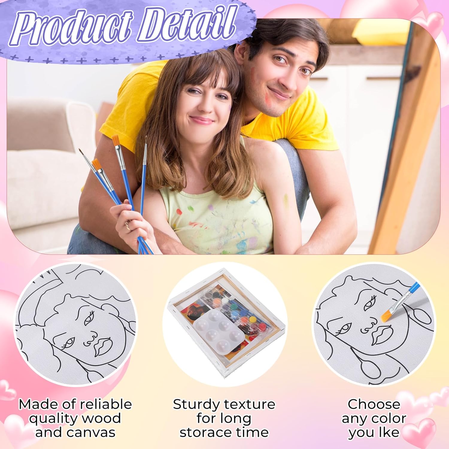 Zhanmai 12 Pack Pre Drawn Canvas for Painting Sip and Paint Kit 8" x 10" Paint Party Set Canvas Painting Pre Printed Canvases for Party Favor DIY Virtual Adult's Date Night(Fashionable Couple)