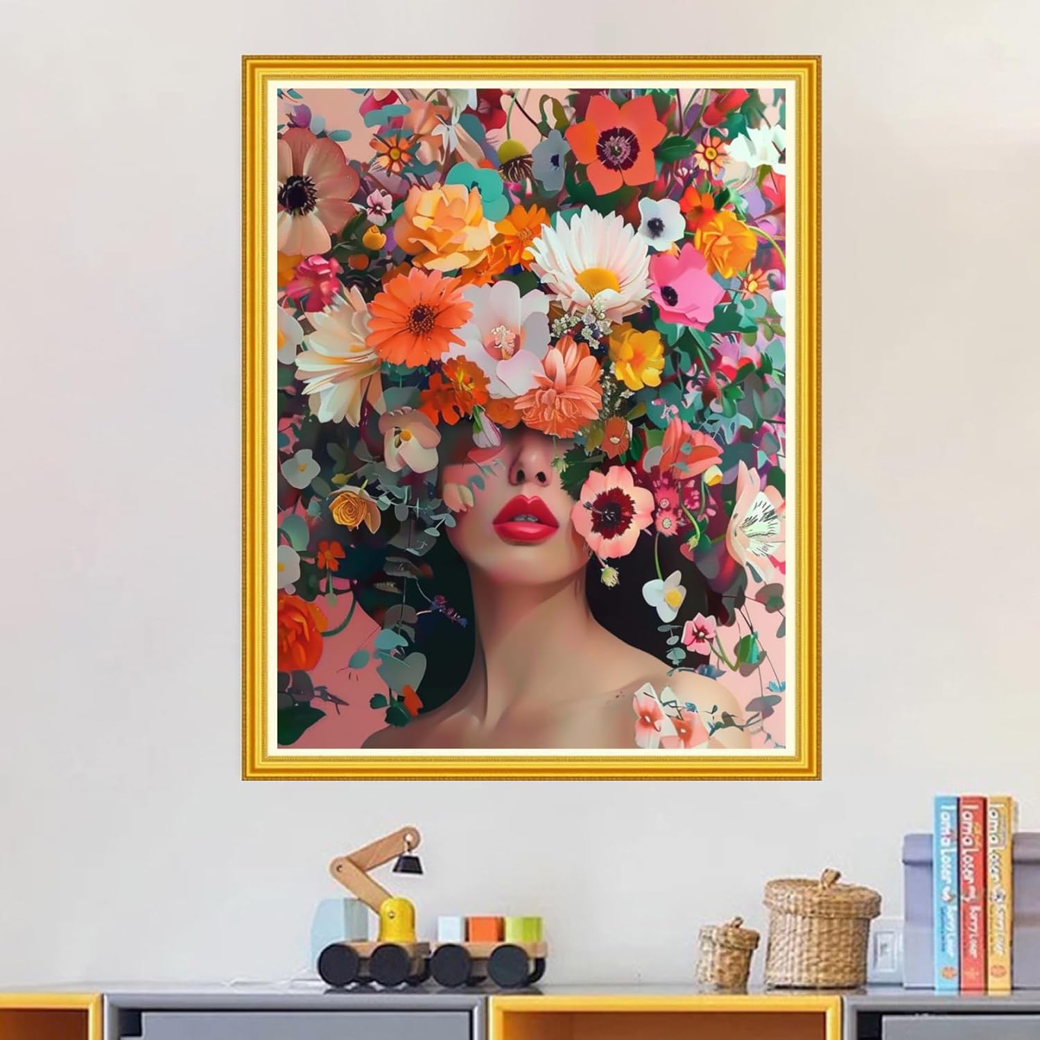 Magxvouy Cross Stitch Kits Stamped Full Range of Embroidery Kits,Cross Stitch Patterns Needlework Kits for Beginners 11CT Printed Kits&Girl Flowers 16x20 inch