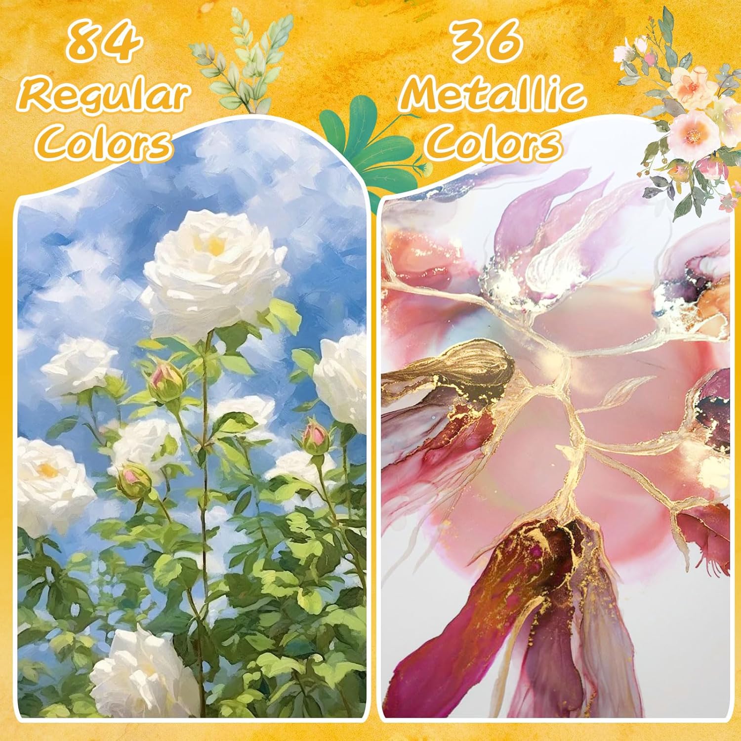 - ă139 PCS All in One Art KităThe Premium watercolor set includes 84 regular colors, 36 metallic colors, 4 pastel colors, 4 fluorescent colors, 1 water brush pen, 3 detail paintbrushes, 1 art sponge, 1 swatch sheet, 1 nylon paintbrush, 1 HB pencil, 1 rubber, 1 pencil sharpener, 1 transparent palette, total 139 pcs!