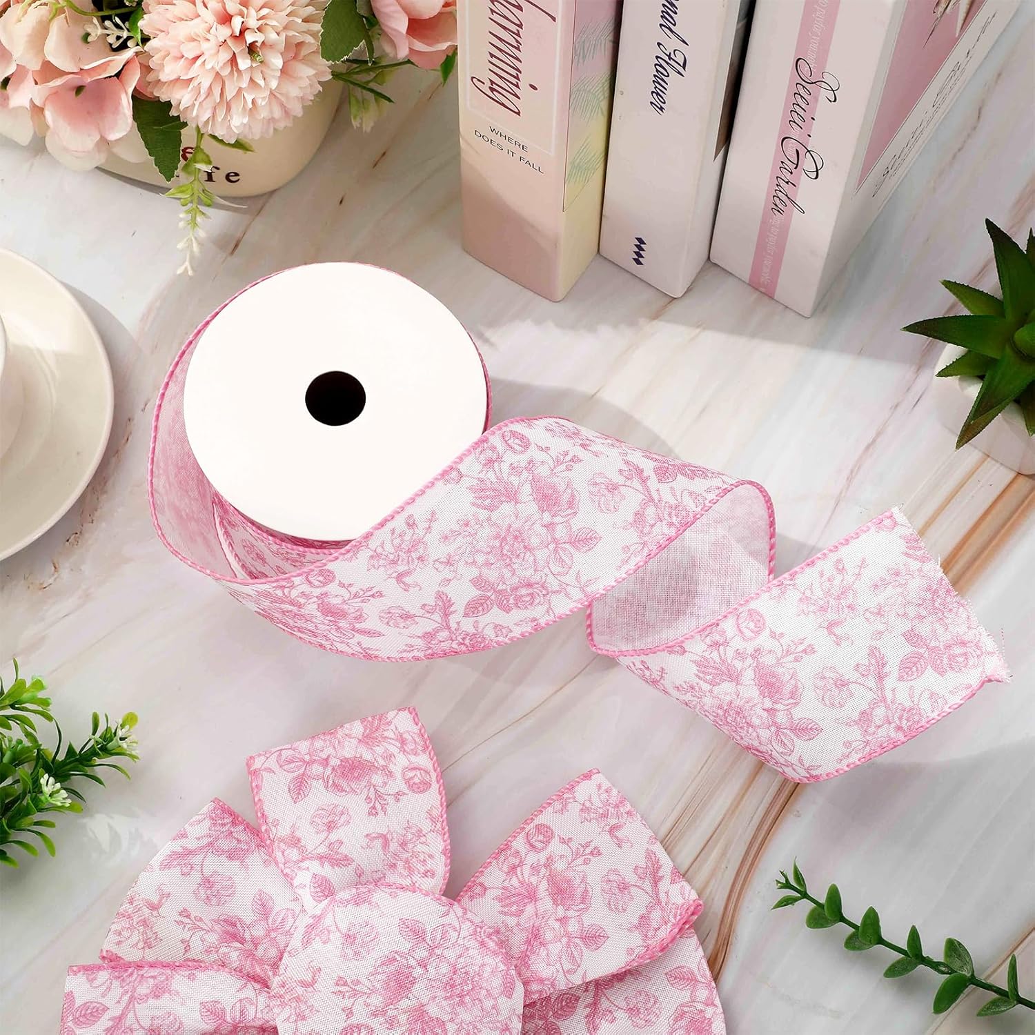 - FLORAL DESIGN: Our wired edge ribbon is designed with various chinoiserie flowers and colored in pink, elegant and delicate, will nicely increase fun atmosphere.
