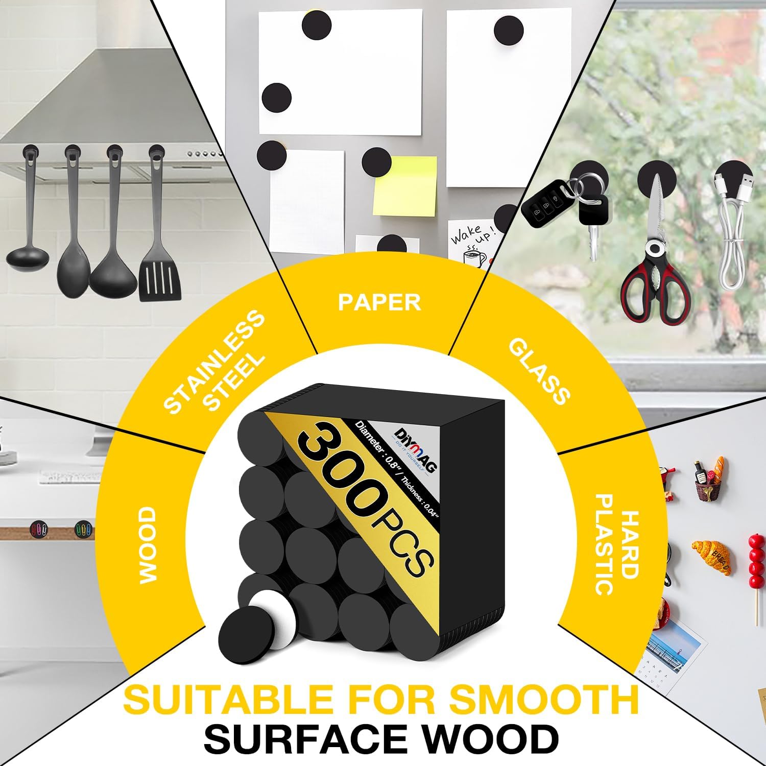 - 【Strong Adhesive】The magnets have a strong adhesive backing, ensuring that they stick firmly to most smooth surface without falling off. Suitable for clean, smooth, and uniform surfaces made of paper, wood, stainless steel, glass, and hard plastic