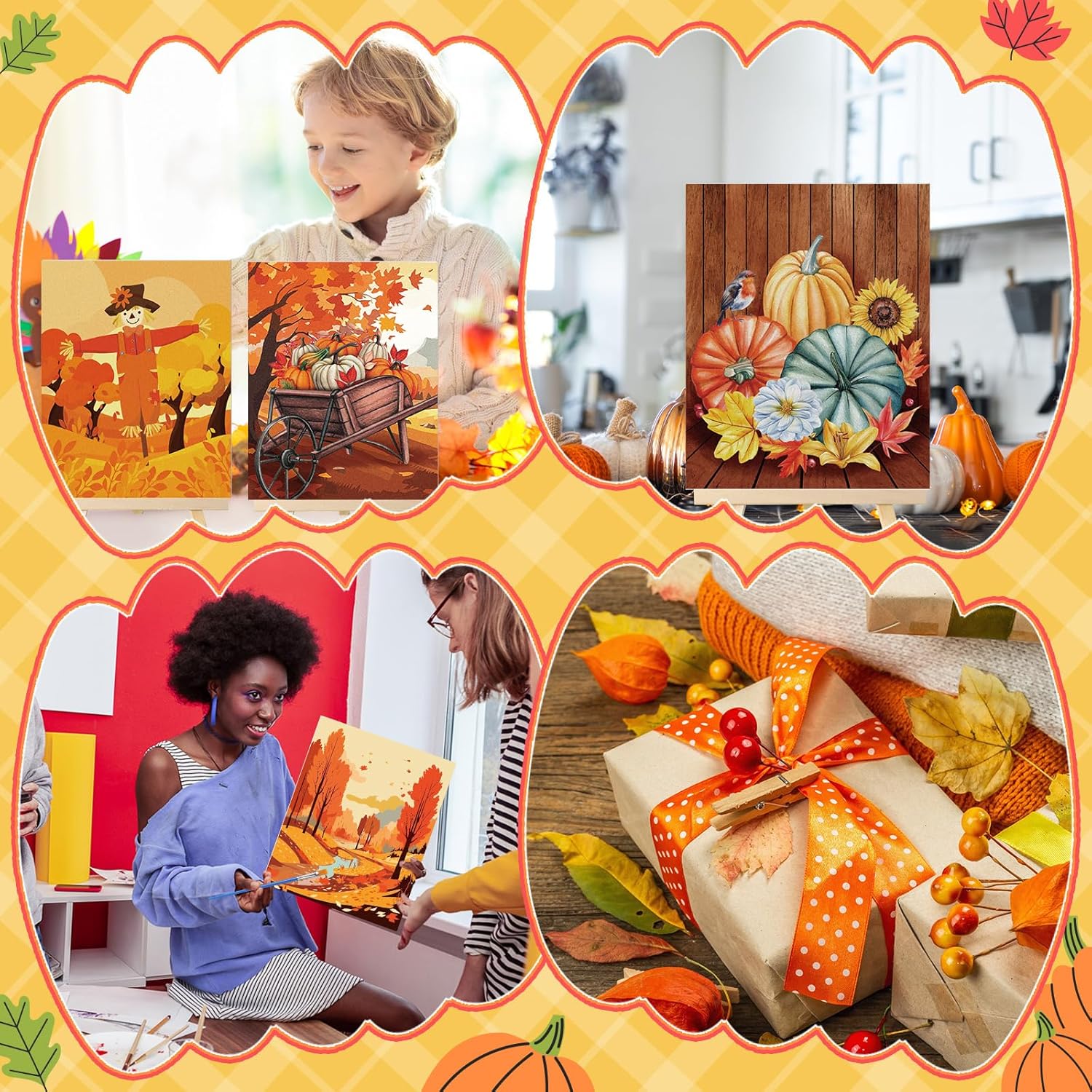 Zhanmai 12 Pack Pre Drawn Canvas for Painting Sip and Paint Kit 8" x 10" Paint Party Set Canvas Painting Pre Printed Canvases for Party Favor DIY Virtual Adult's Date Night(Fall Thanksgiving)
