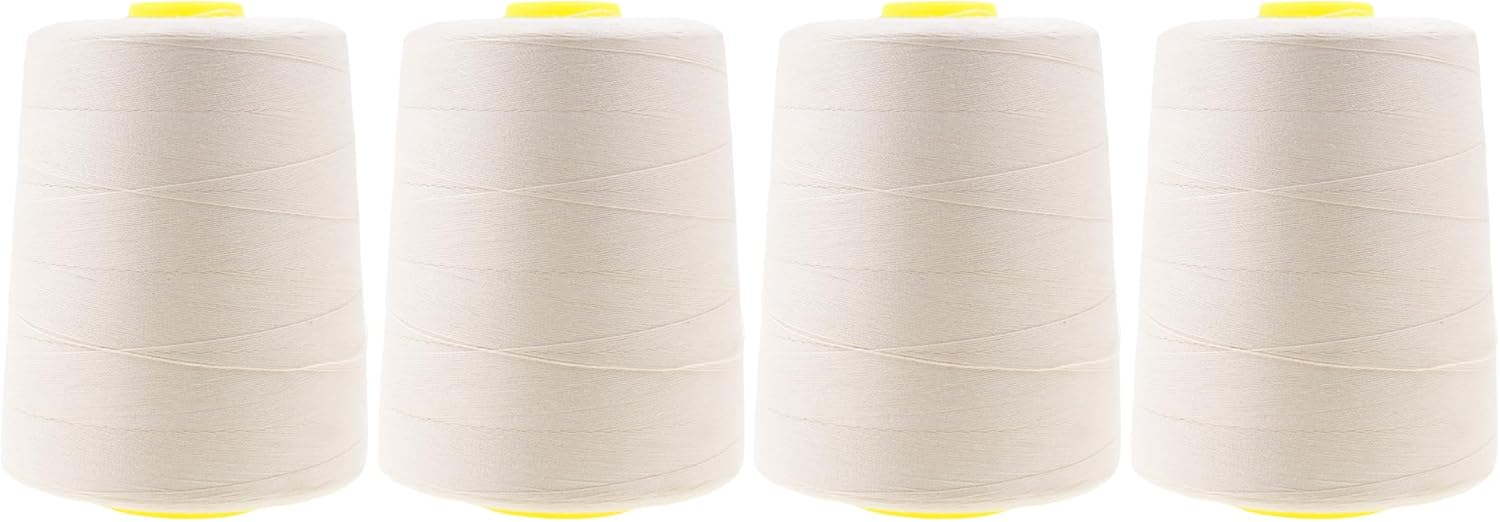 Mandala Crafts 4 Pack of Serger Threads Cones Spools - 20S/2 24000 Yards Polyester Ivory Threads for Sergers Machine and Overlock Quilting Sewing Machine