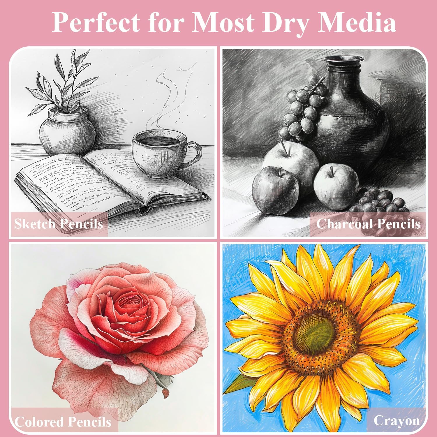 - Versatile Dry Media Compatibility: Our premium white drawing paper for kids is suitable for pencils, pens, crayons, charcoal, pastels, and sketching sticks. Not suitable for alcohol markers and watercolor pens. A great back-to-school item for girls, students, and kids. The sketchbook for drawing supports various artistic activities. This sketchbook for kids encourages creativity. The spiral bound sketchbook offers easy handling. The spiral sketchbook is suitable for portability.