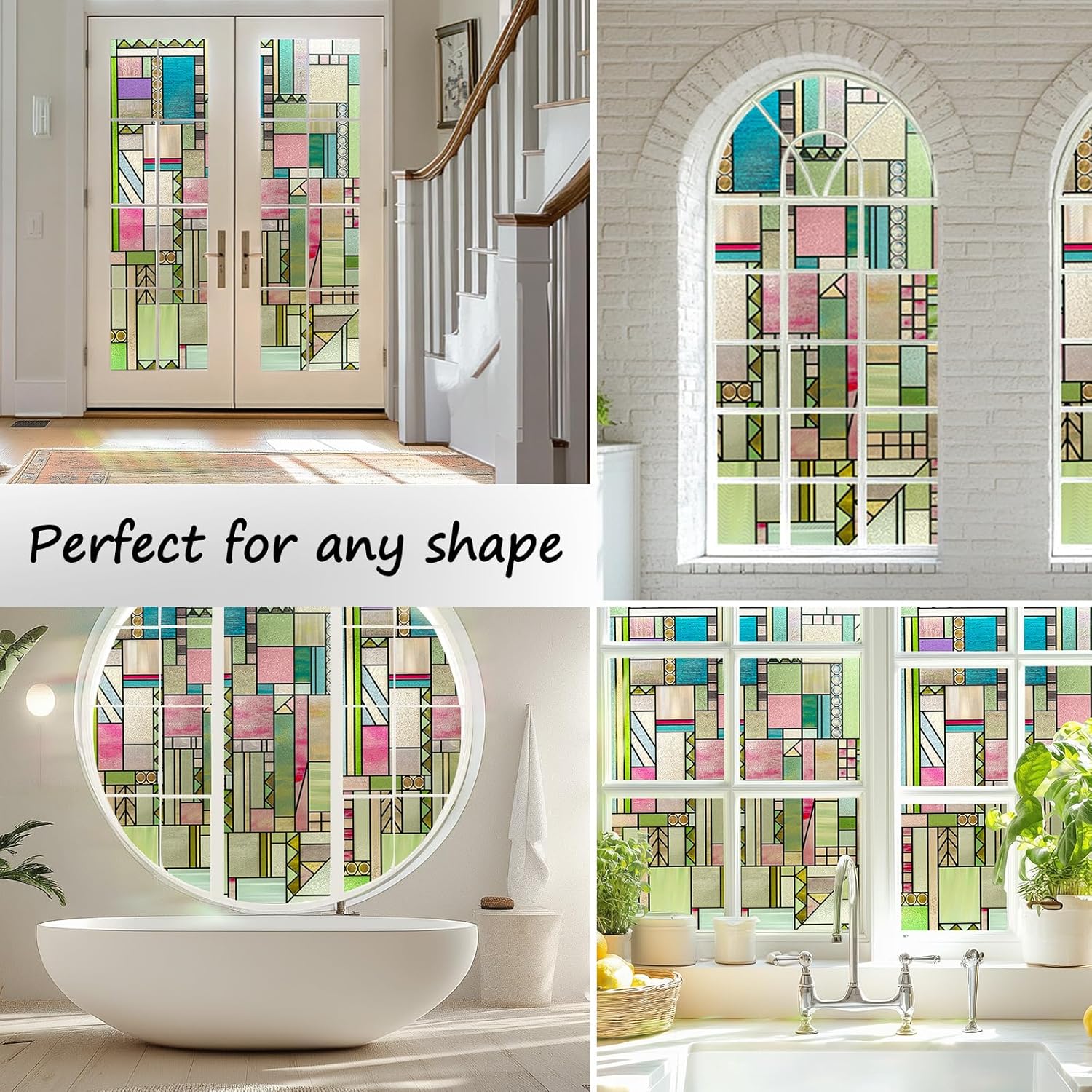 - 【Effective UV Blocking and Heat Control】This decorative stained glass window film effectively blocks UV rays while still allowing natural light to pass through. Dynamic colour changes under changing light conditions create a stunning effect that enhances enhancing the atmosphere indoors.