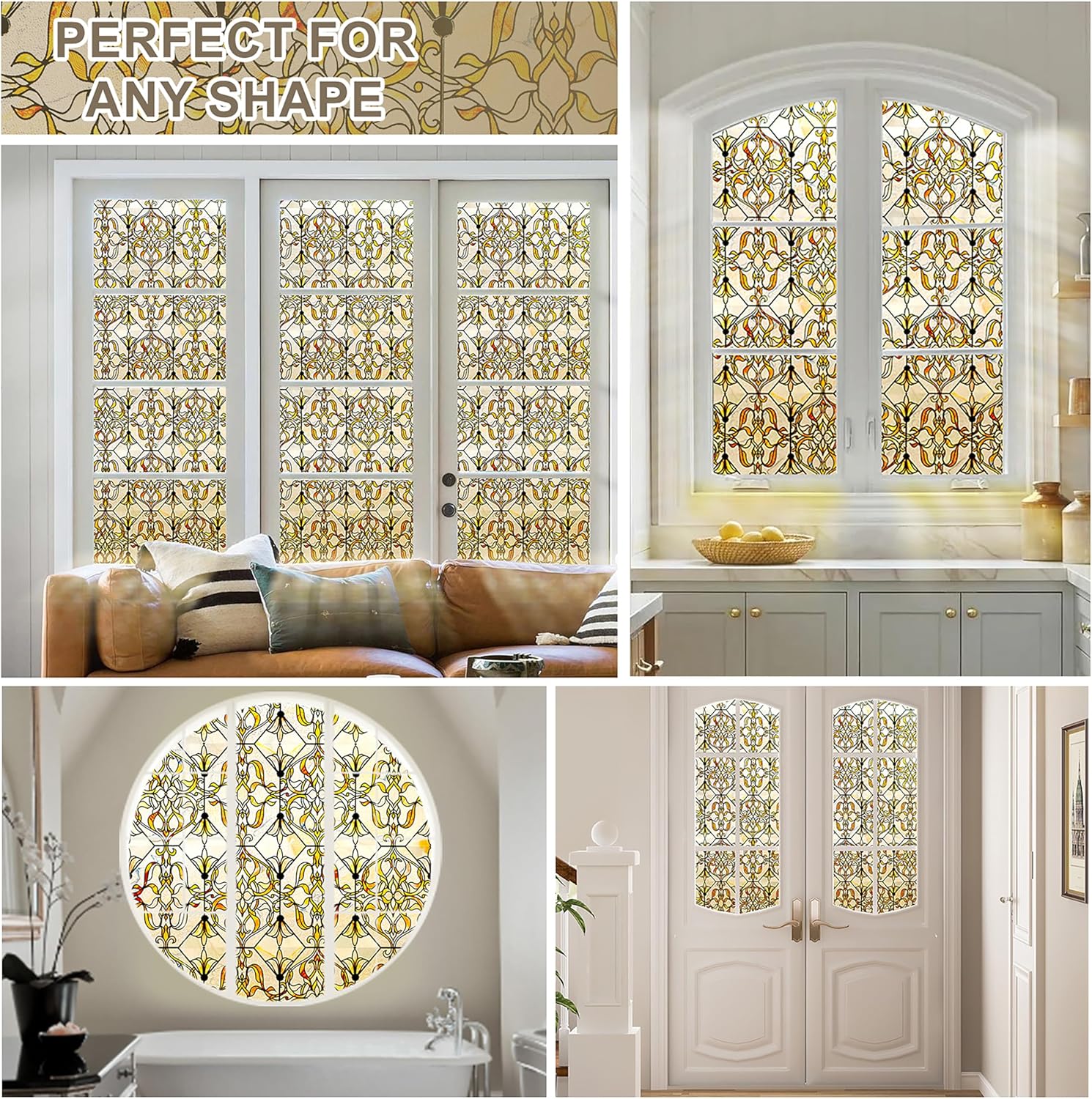 - 【Refined Luxury Design】Golden Filigree OHTMERU Stained Glass Window Privacy Film combines elegance and luxury where delicate golden patterns intertwine to create a sense of refined opulence. Its 3D effect mimics real stained glass and enhances the luxury of your living space.