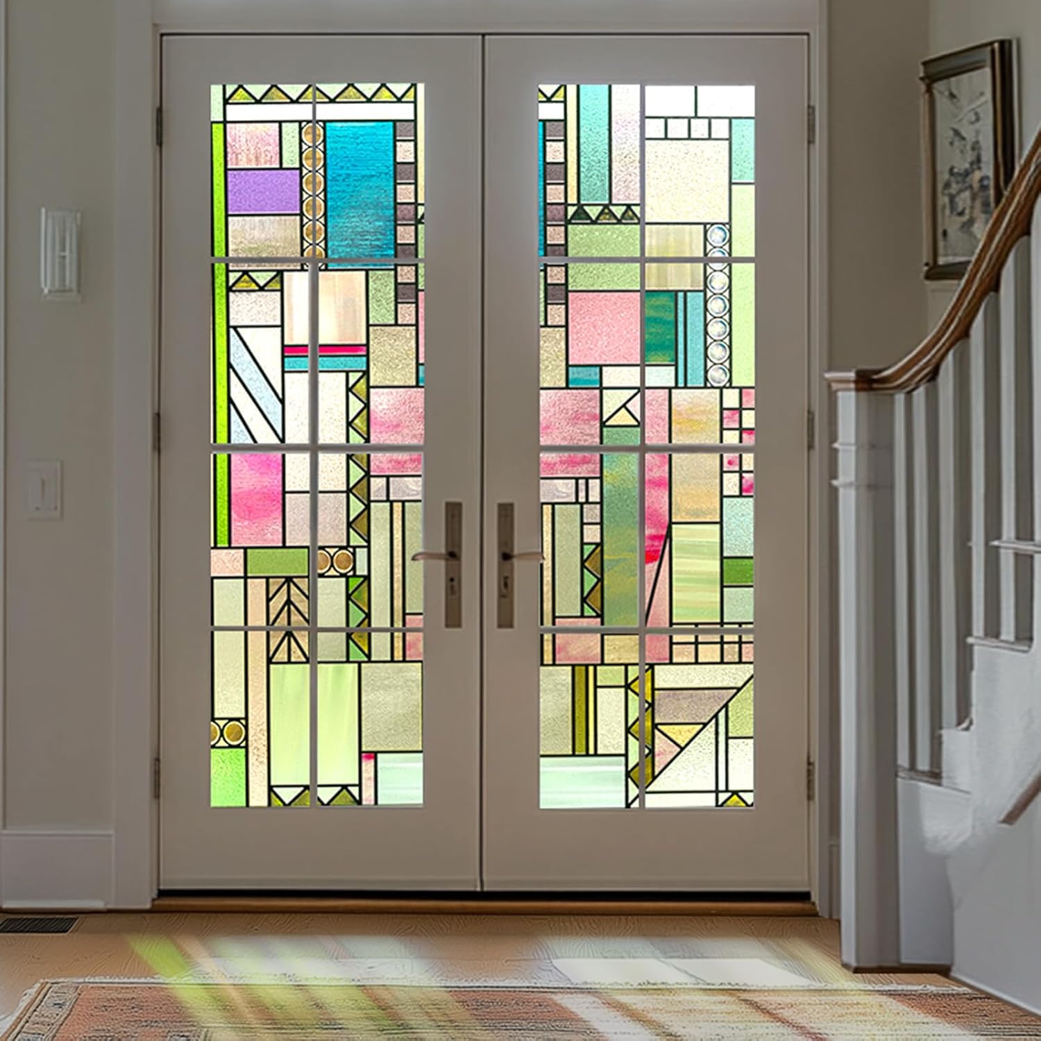 - 【Colourful Artistic Design】The Colourful Abstraction OHTMERU Stained Glass Window Privacy Film Vibrant colours and creative designs come together to transform your windows into a canvas of artistic expression. Its 3D effect mimics real stained glass and enhances the colour of your living space.