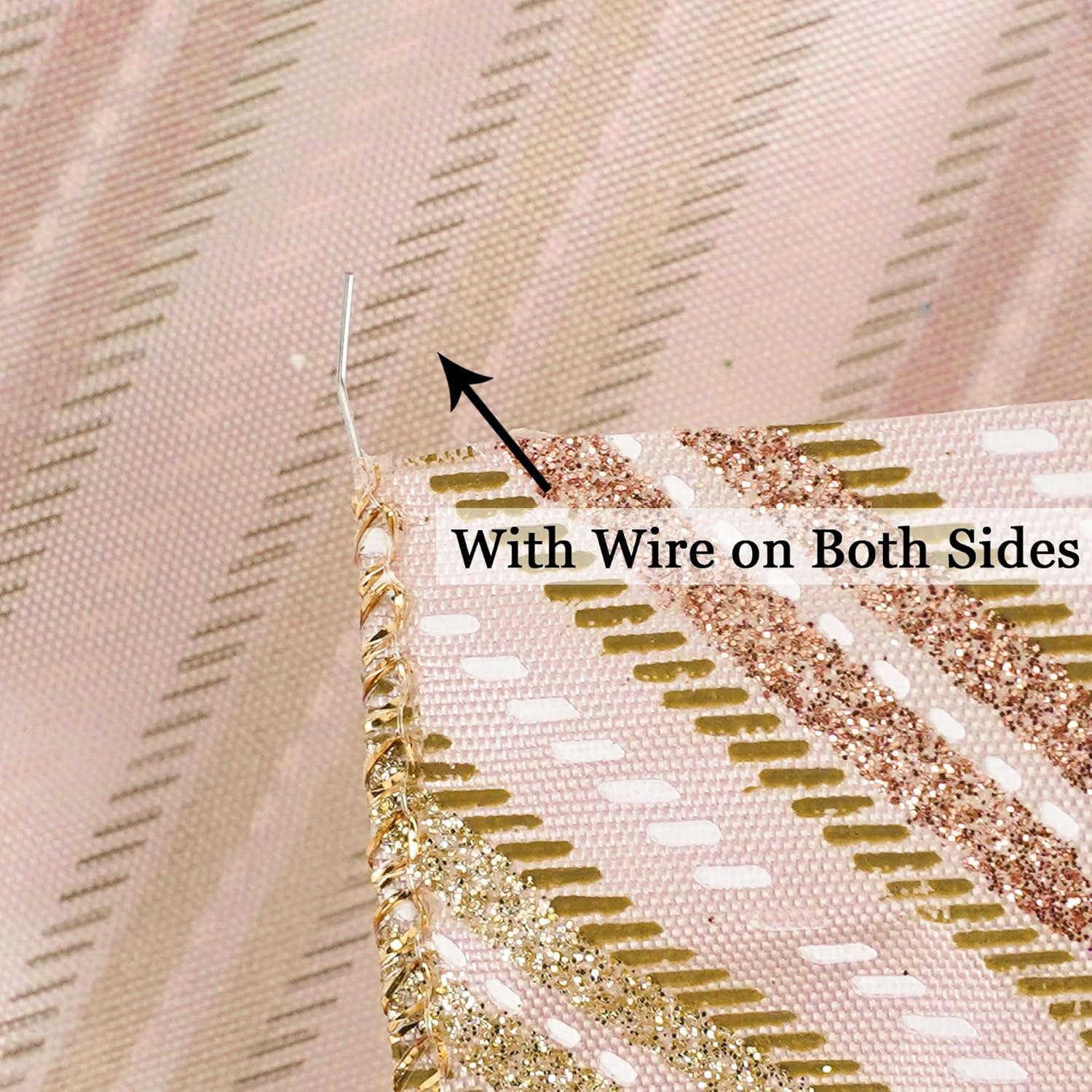 - Our lovely pink satin ribbon features a vibrant pattern of rose gold and champagne gold stripes, adding a cheerful touch to your creations. Measuring 2-1/2 inches wide and 10 yards (approx. 30 feet) in length, this ribbon is designed with wired edges for easy shaping, making it perfect for your special occasions and decor!