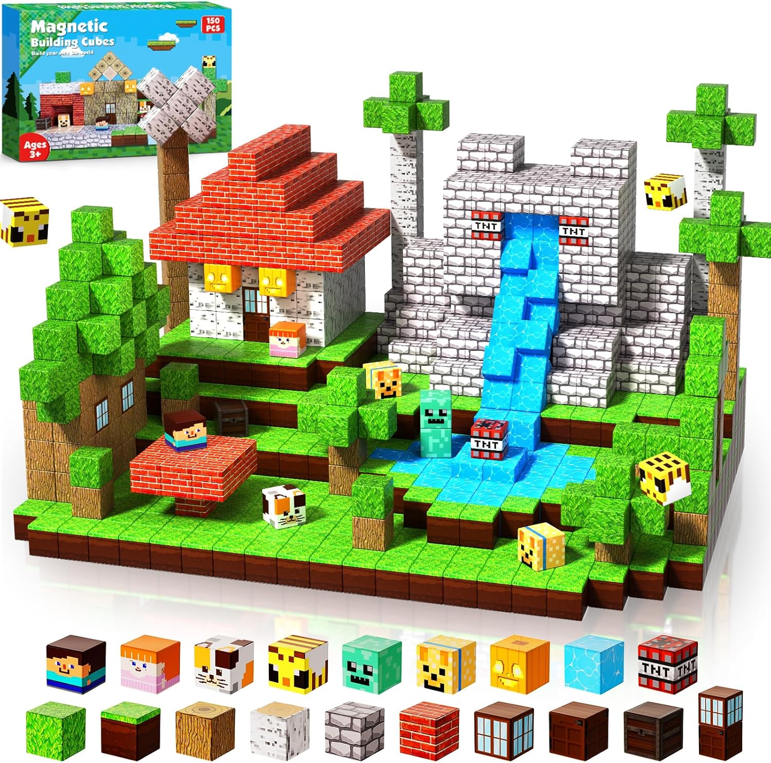 - 【Windmill Falls Homes Magnetic Cube Kit】Including 150 magnetic cubes in 18 colors. Idea booklet with the storyline and beautiful patterns, keep them busy in clever ways. GraceDuck magnetic activity cubes are made of high-quality ABS material and crafted with the round edges. Unlike other magnetic toys on the market, our magnetic cubes kit with super strong internal magnetic, which is easier for toddlers ages 3+ to stick the cubes together and make builds sturdy. Perfect STEM toys help kids gain a deeper understanding of the structure and learn about magnetic properties!