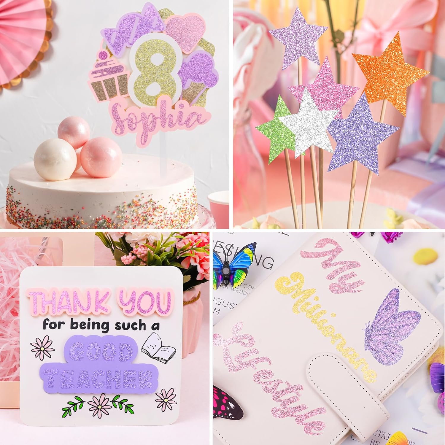 - VIBRANT GLITTER SHIMMER - The glitter vinyl effect breathes life into your creative visions, sparkling every piece for party decorations. White, Champagne Gold, Orange, Lime, Cherry Pink, Mint Green, Powder Pink, Mauve, Lavender, 9 colors available.
