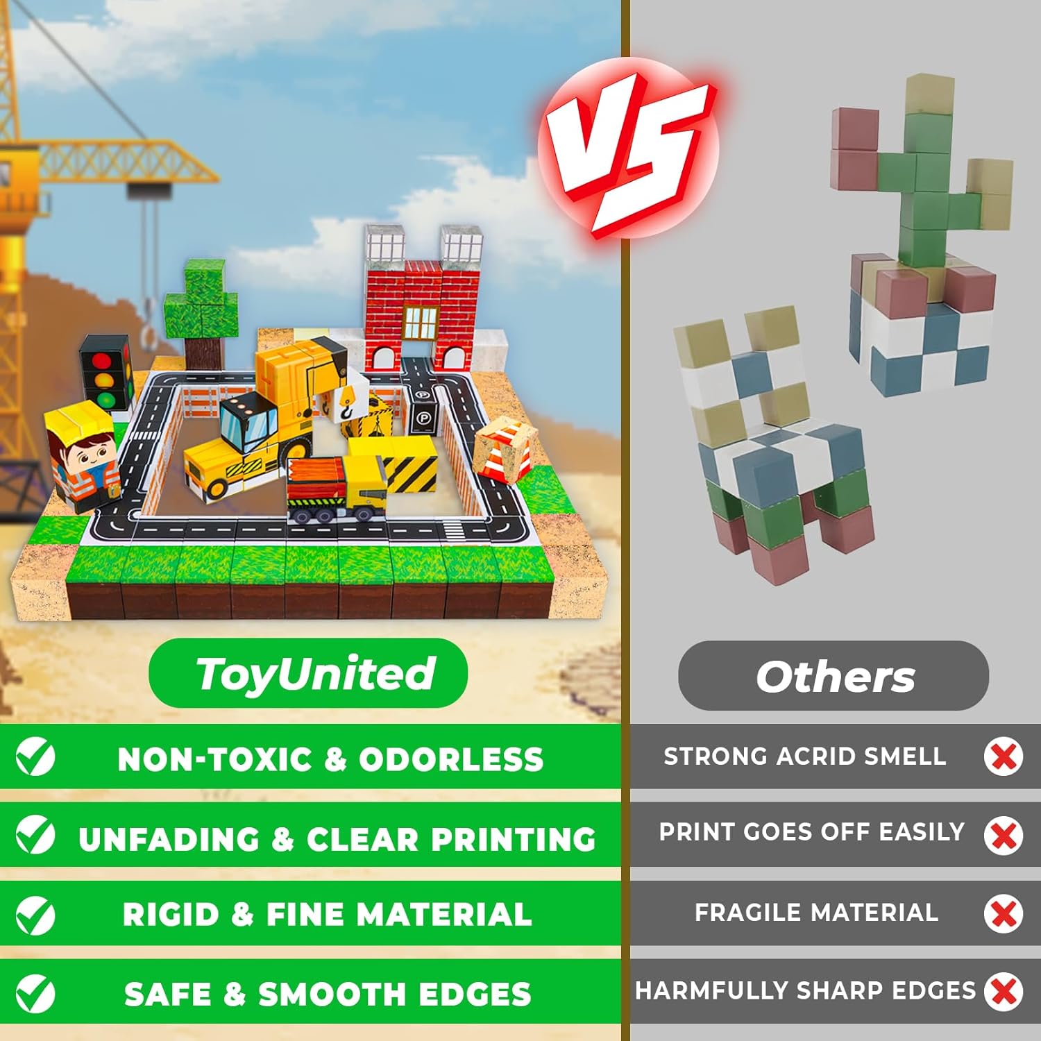 - 【Interactive & Entertaining】 The magnetic building blocks set includes an instruction manual paper and 14 different patterns blocks. These magnetic blocks for kids can build structures, and scenes with these magnetic toys. Each cube connects easily for unlimited stacking and construction variations.