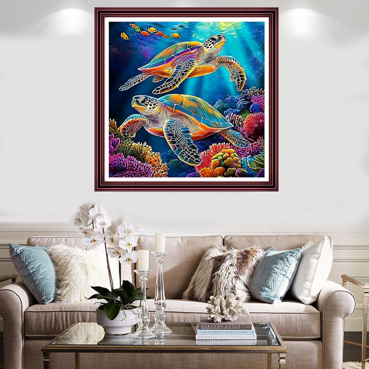 Redxing Stamped Cross Stitch Kits Full Range of Embroidery Starter Kits- Needlepoint Counted Cross Stitch Kits for Beginner Adults 11CT Printed Embroidery Kit-Rainbow Turtle Coral 18x18 inch