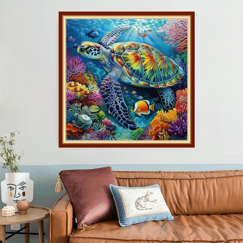 Joyhoor Stamped Cross Stitch Kits for Beginners, Needlepoint Kits for Adults, 11CT Counted Embroidery Kits-Turtle Coral 18x18 inchs