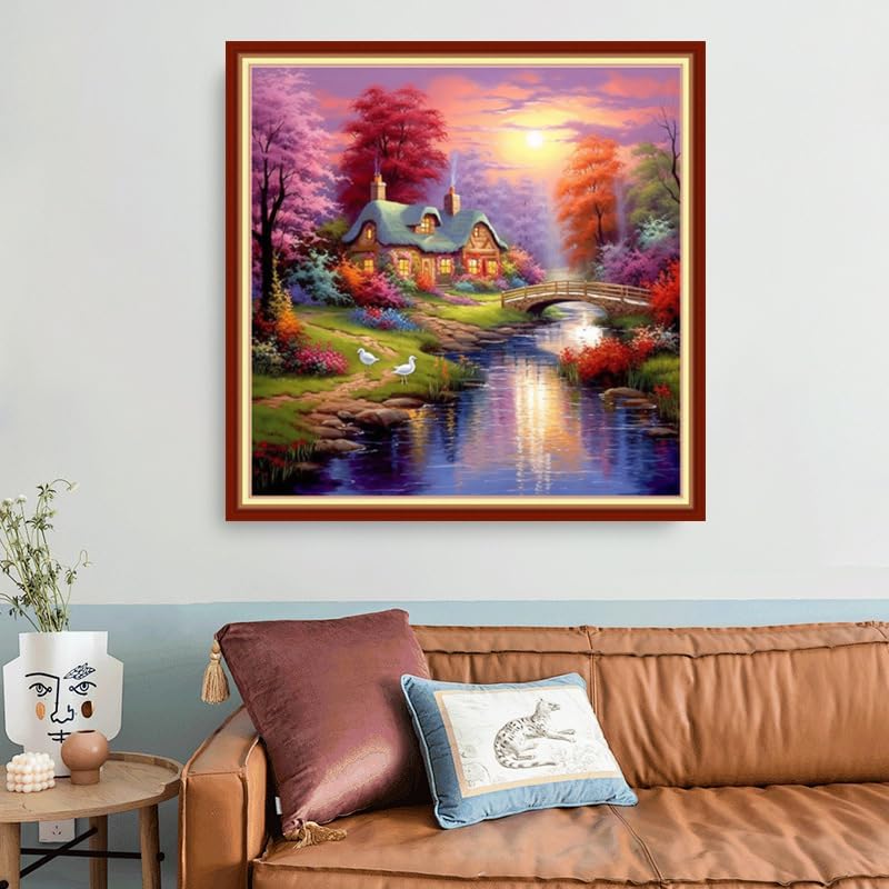 Joyhoor Stamped Cross Stitch Kits for Beginners, Needlepoint Kits for Adults, 11CT Counted Embroidery Kits-Dream Home 18x18 inchs