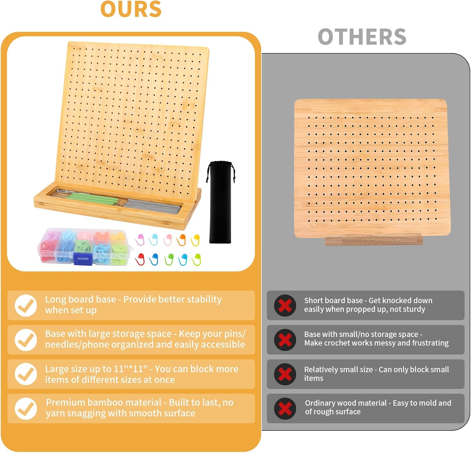 iHansee 11" Crochet Blocking Board with 20 Pegs, 200 Stitch Markers, Bamboo Granny Square Blocking Boards for Crochet Projects, Knitting Crocheting Accessories Kit, Gifts for Crocheters