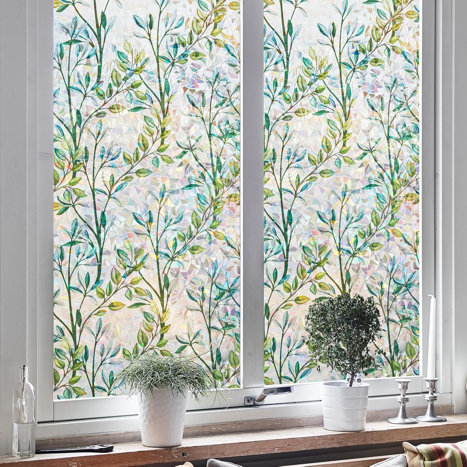 - Rainbow Leaf Pattern: 3d window privacy film consists of a half-moon and leaves pattern that, when installed, creates a strong rainbow visual effect when the sun shines, giving a unique effect to the window, as well as being an affordable alternative to heavy and expensive curtains or blinds