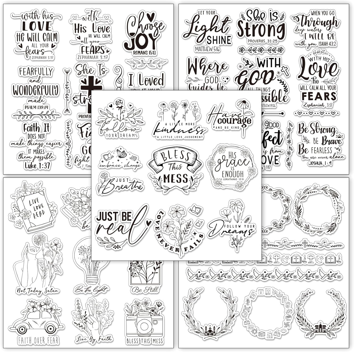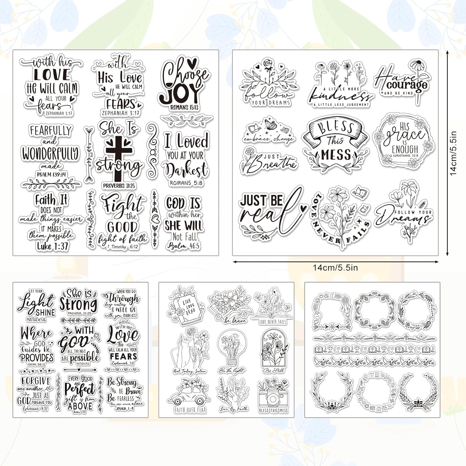 Whaline 5 Sheets Bible Verse Clear Stamps Christian Jesus Silicone Transparent Stamps Greeting Words Border Stamp Cards for DIY Card Making Scrapbooking Embossing Album Decor