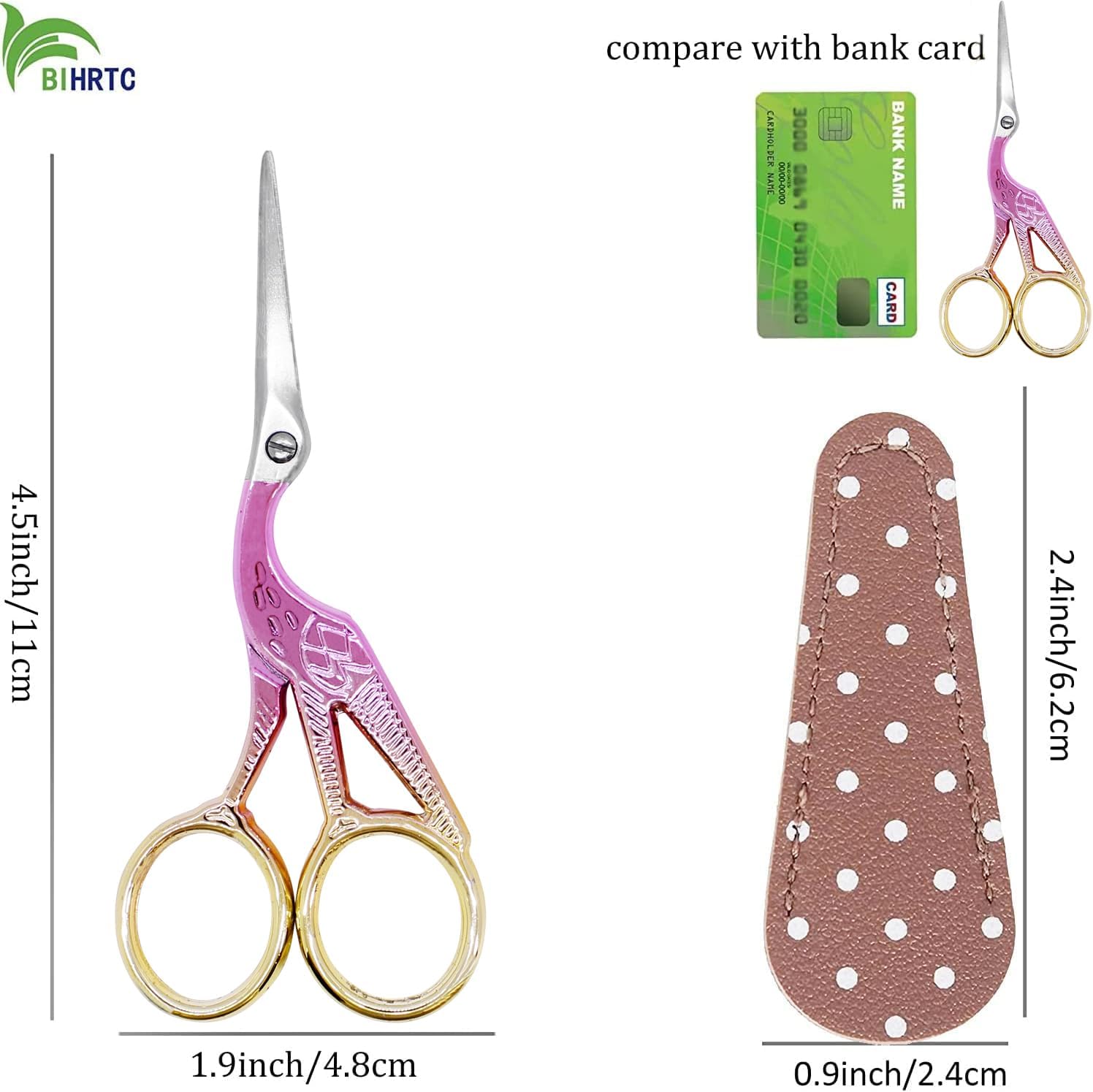 BIHRTC 4.5Inch Stork Stainless Steel Sharp Tip Scissors with Leather Safe Cover Sewing Dressmaker Scissors for Embroidery Craft Needle Work Art Work Handcraft Threading
