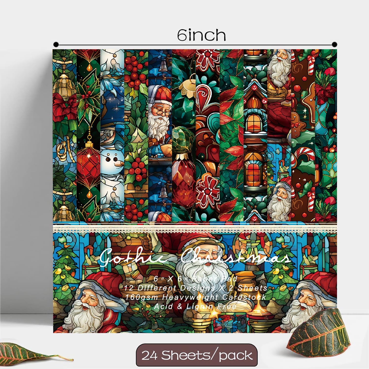 YASMEN 6"x6" Scrapbook Paper Pad - 24 Sheets of Patterned Cardstock for Card Making, Scrapbooking, Junk Journal, DIY Gift Cards - Single-Sided Decopodge Decorative Craft Paper
