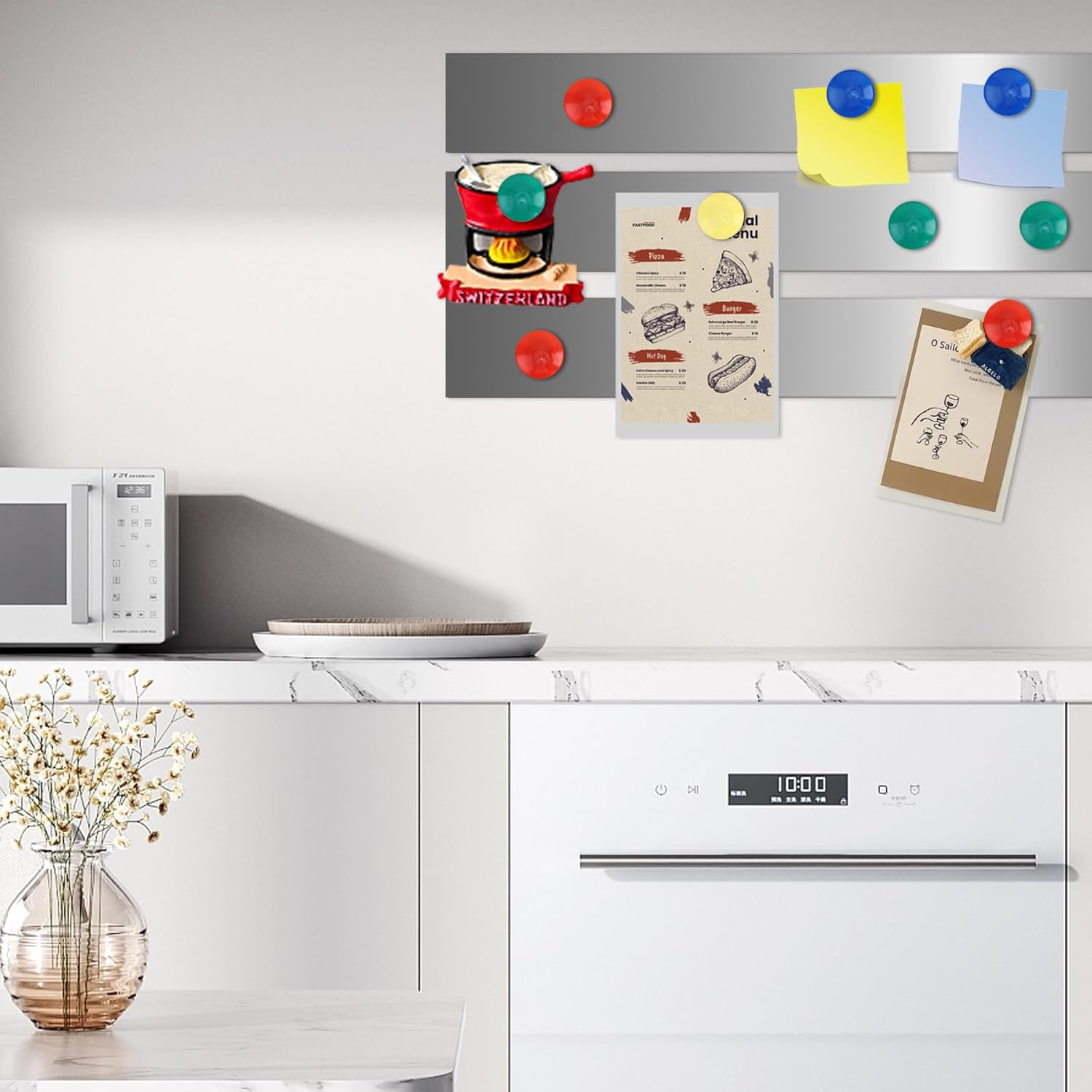 - Premium Material: It consists of three layers: a metal tape, an acrylic adhesive layer and a protective film. Our metal strips can easily attach to magnets, you can use dot magnets to stick memos or important notes for viewing