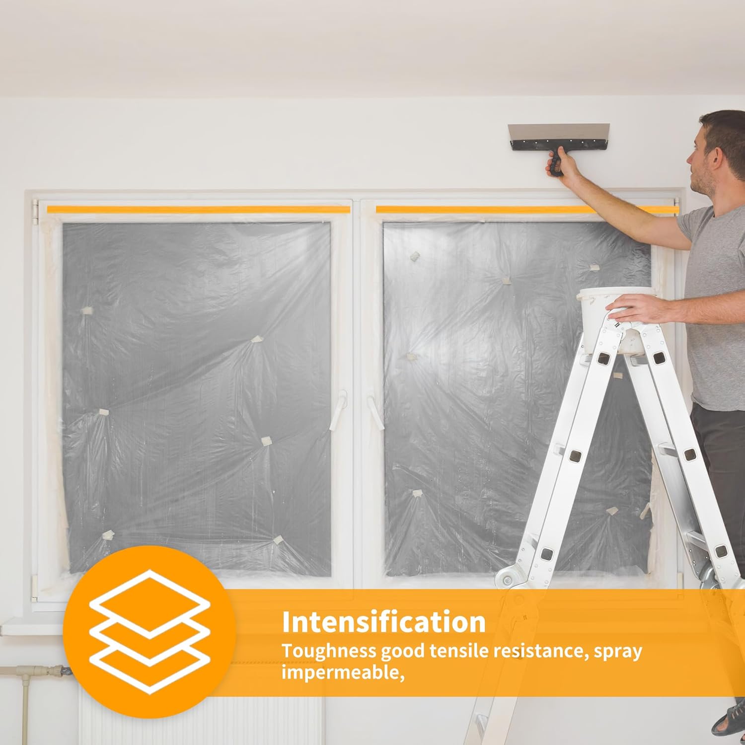 - Easy to Use : Our Pre-Taped Masking Film use Folding Design Easy to Unfold and Convenient to use, you just need to unroll the roll of masking film, put the tape side firmly in the right place, then cut it with scissors or tear it by hand, the plastic film will be electrostatically adsorbed and attached to the surface of the object.