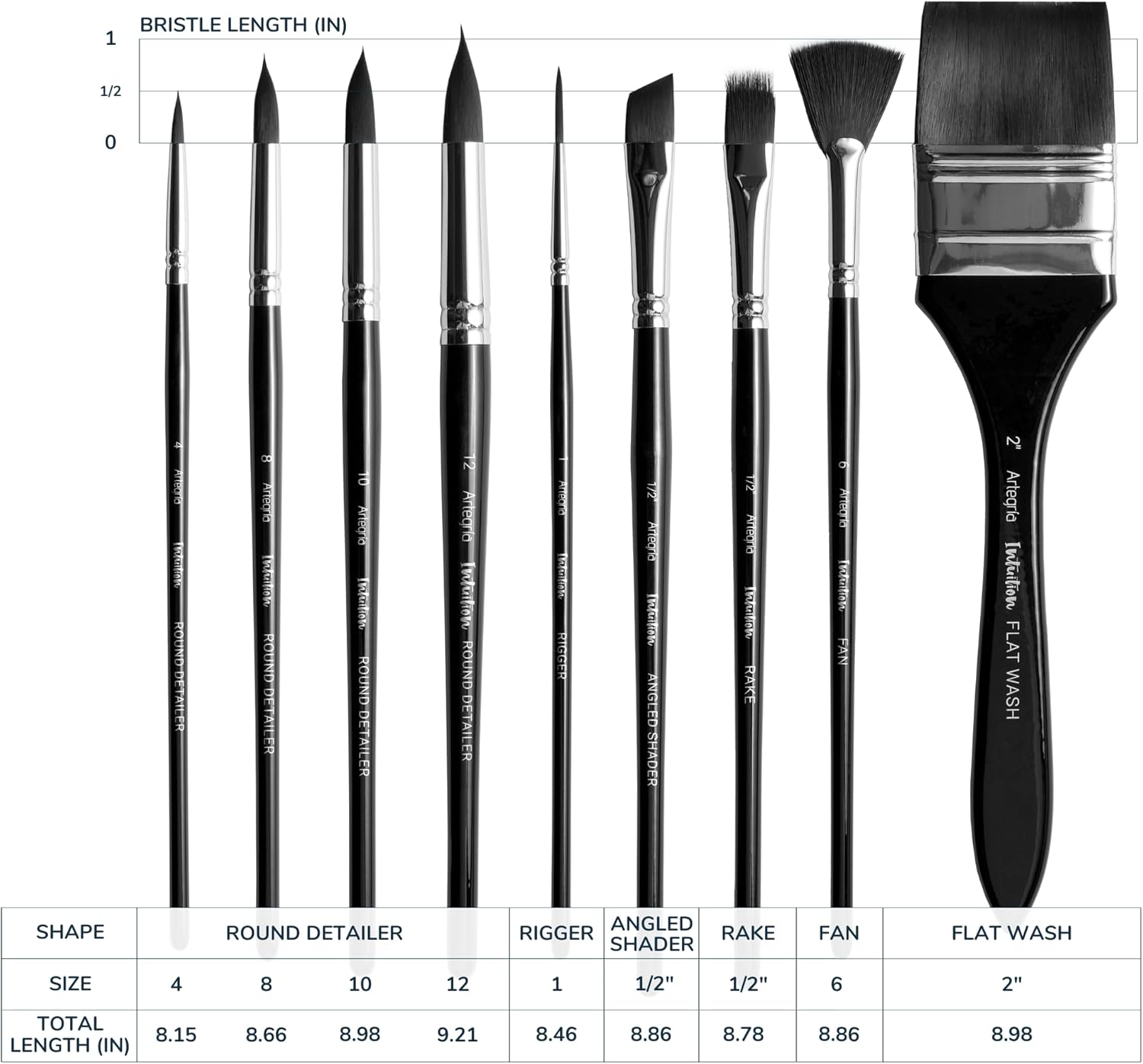 - Bristle Type : Round; Flat Wash; Rigger; Rake; Fan; Angled Shader