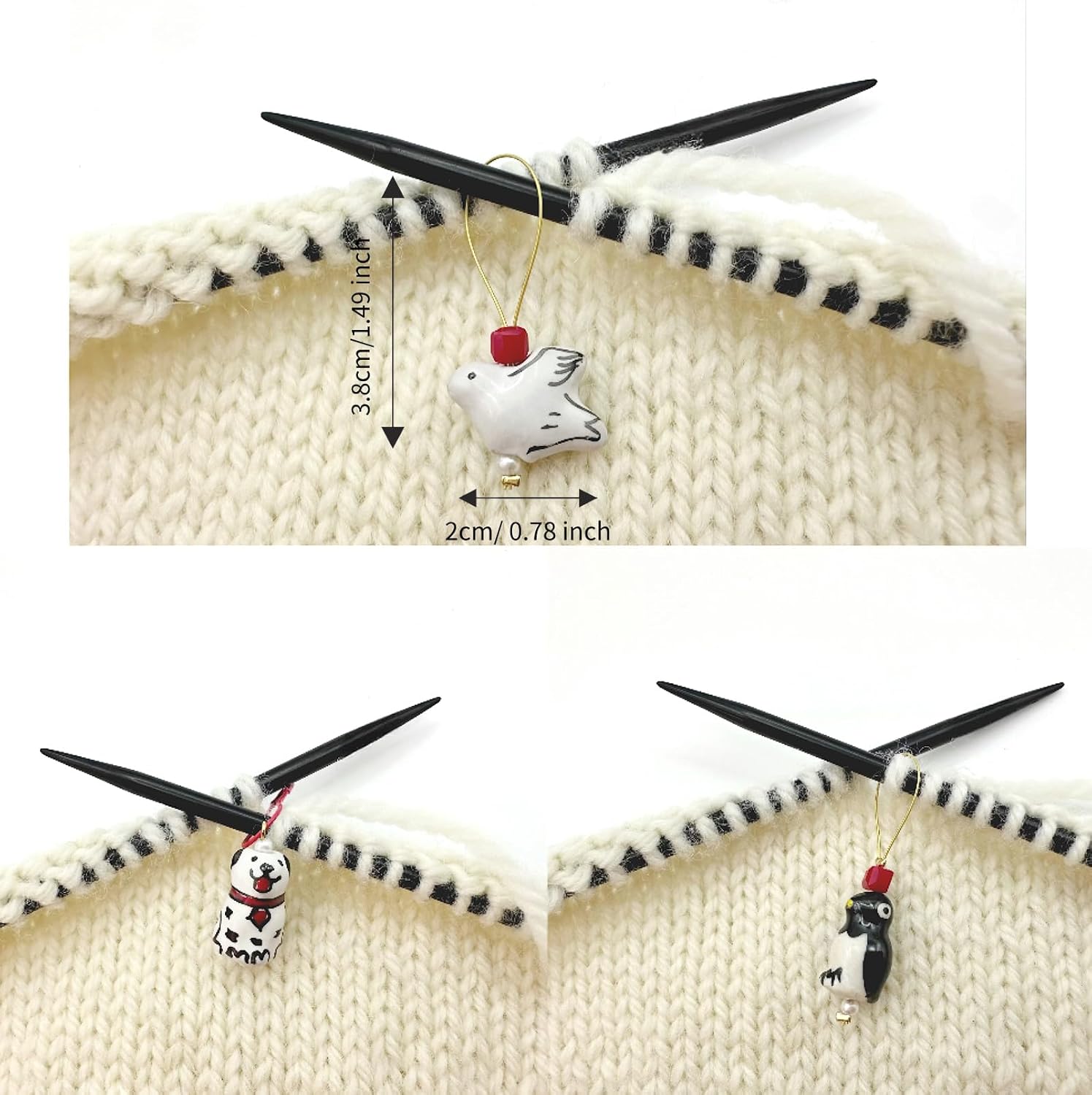 - Handmade Ceramic Stitch Markers: Each set includes three beautifully crafted ceramic stitch markers, featuring unique animal designs.