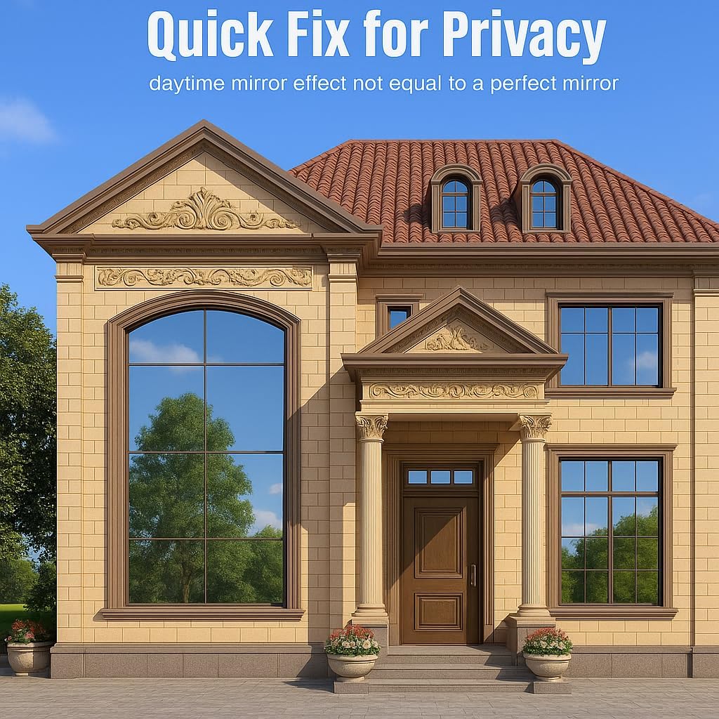 - PET MATERIAL AND HEAT INSULATION: Made with PET material, this reflective window film is stronger and clearer than vinyl. Acting as window film heat blocking, it reflects sunlight, reduces summer heat, and helps maintain room temperature, ensuring energy savings and year-round comfort.