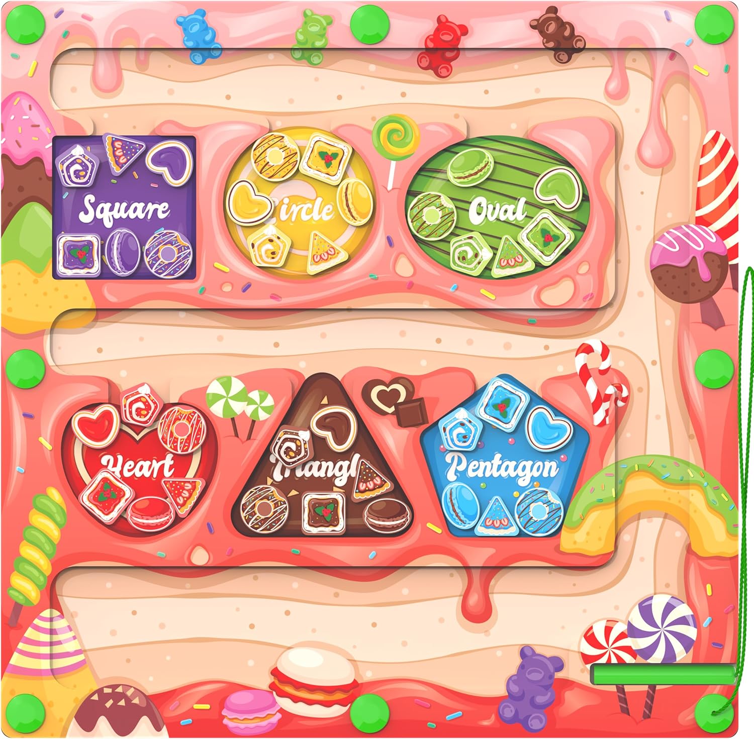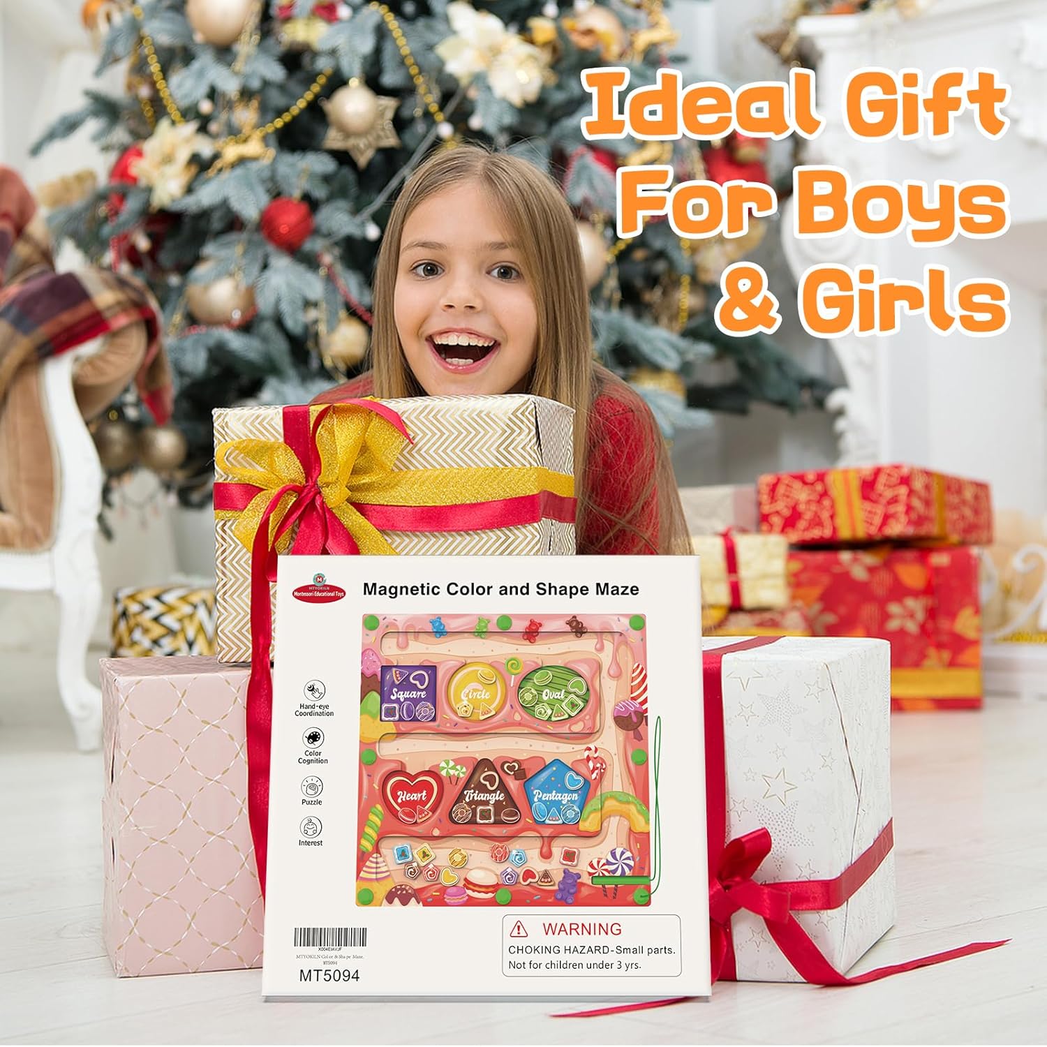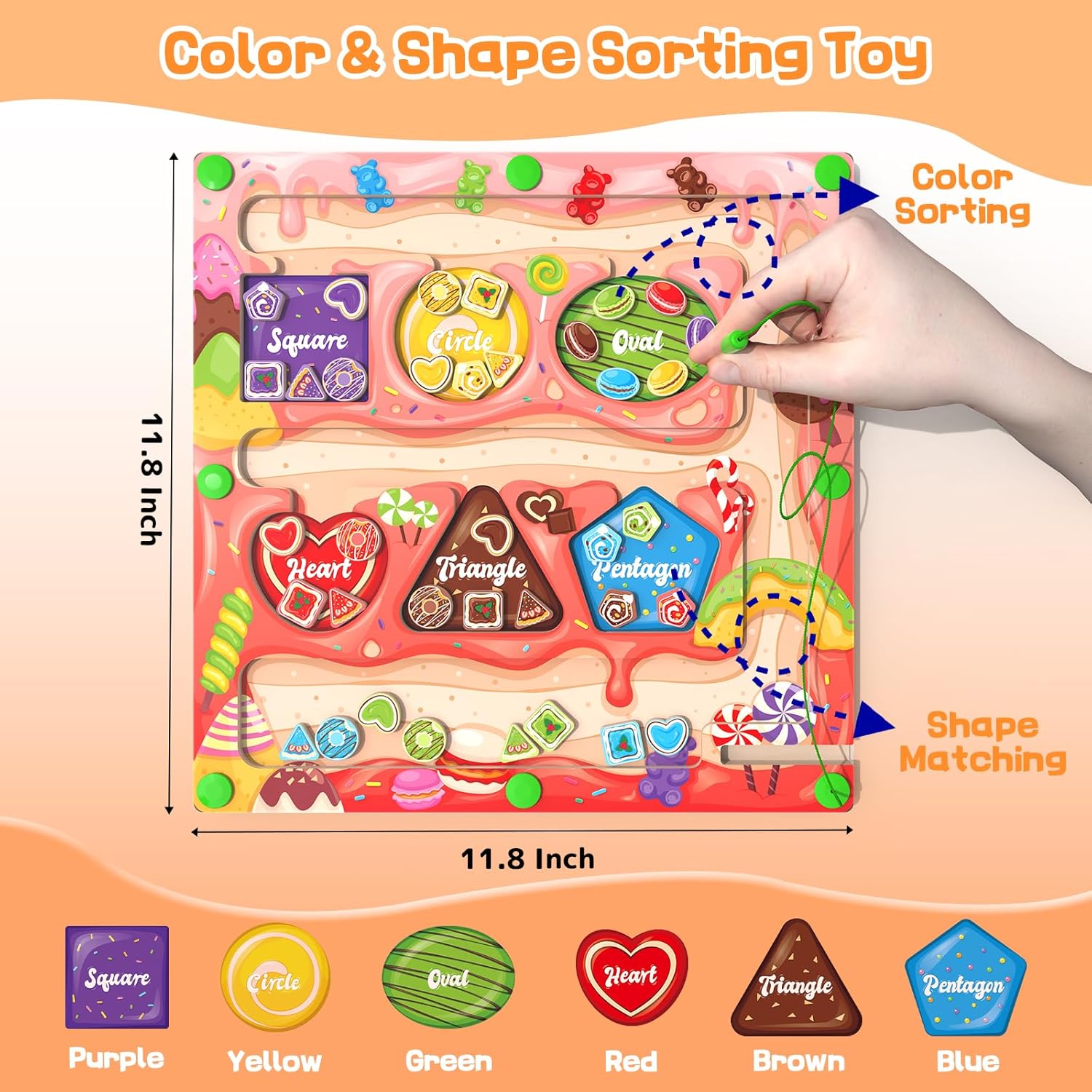 Magnetic Color & Shape Maze - Montessori Toys for 3 Years Old Girl Boy, Color and Shape Sorting Toy, Magnetic Activity Puzzle Board for Kids, Fine Motor Skill Game