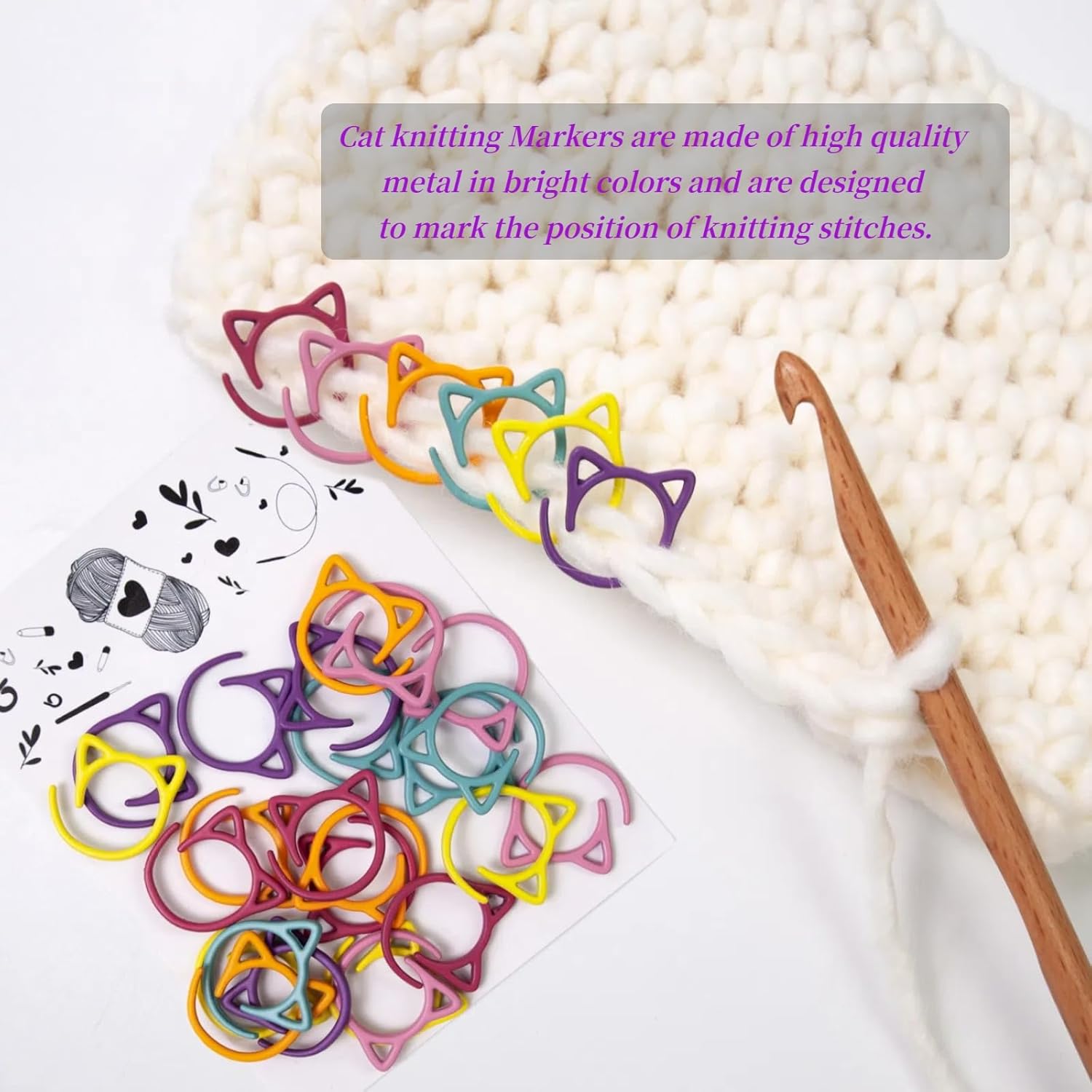 Fazanwey 30pcs Cat Stitch Markers with Storage Case, Metal Stitch Markers for Crocheting,Colorful Crochet Markers for Knitting Weaving Lovers