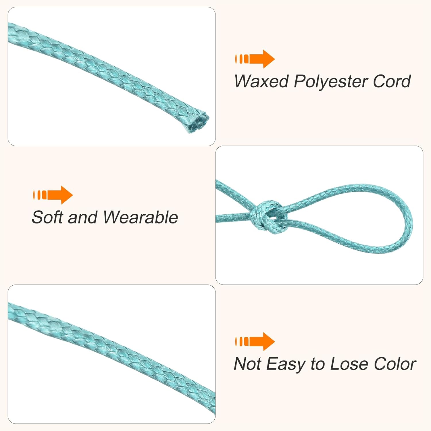 MECCANIXITY Waxed Cord 1.2mm Waxed Polyester Cord 175 Yard Wax String for Bracelet Making,Necklaces, Beading,Jewelry Making and DIY Crafts(Lake Blue)