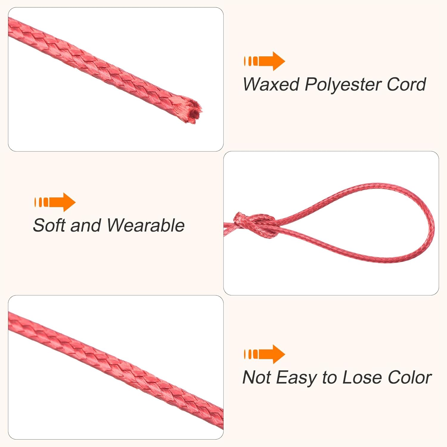 MECCANIXITY Waxed Cord 0.8mm Waxed Polyester Cord 175 Yard Wax String for Bracelet Making,Necklaces, Beading,Jewelry Making and DIY Crafts(Watermelon Red)